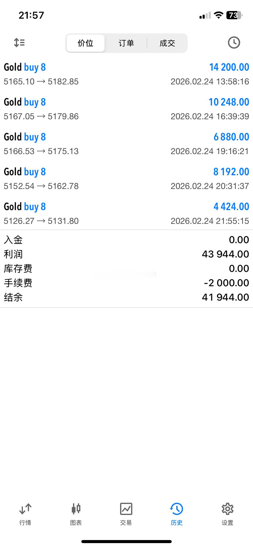 2026.2.24日操作5单,全胜!共收割690点利润。所有的优秀都是好习惯堆积,日复一日的坚持,铸就了更好的自己。今日到此收工,晚安!黄金 金价 晚安
