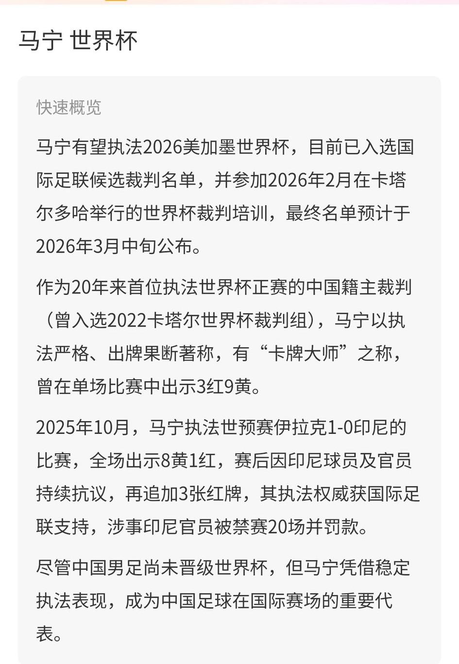 都在嘲笑马宁,实则他是中国最接近世界杯的人。当国足还在为世界杯席位发愁,卡牌大师马宁将再次执法世界杯。 2022年卡塔尔世界杯入选第四官员,连续4年因为执法亚冠而未能与家人除夕团聚。