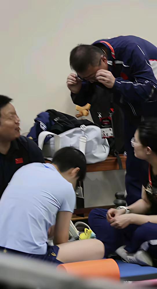 出乎意料, 马琳拿过翔哥眼镜戴上,专门看看莎莎的鞋。 没想到莎莎定制的鞋子竟然磨脚, 原来受伤位置磨破皮, 马琳不放心, 赶紧拿过翔哥脸上的眼镜自己戴上确认。 这真是大意了。 莎莎穿着不合脚的鞋子赛场来回移动一个多小时,这不仅仅是考研毅力。这是对运动员的脚保护不力呀,失责呀。 乒乓球运动员的脚和手,都是要好好保护的,莎莎这脚受苦了!
