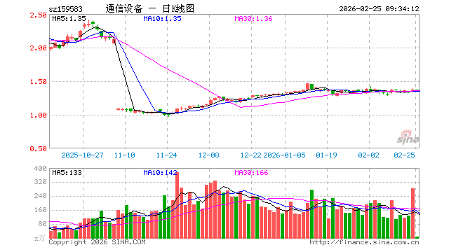 2月25日,通信设备ETF(159583)开盘涨0.00%,报1.372元。通信设备ETF(159583)重仓股方面,中际旭创开盘跌0.72%,新易盛跌0.55%,中兴通讯涨0.34%,天孚通信涨0.37%,航天电子涨0.79%,中国卫星涨0.10%,紫光股份涨0.08%,中航光电涨0.29%,剑桥科技涨0.03%,光迅科技跌0.33%。