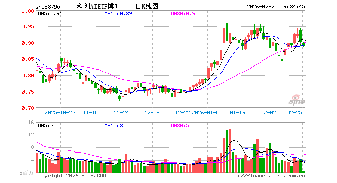 2月25日,科创AIETF博时(588790)开盘跌0.22%,报0.900元。科创AIETF博时(588790)重仓股方面,金山办公开盘涨0.40%,澜起科技涨0.01%,寒武纪涨0.79%,芯原股份跌2.92%,石头科技涨0.45%,晶晨股份涨0.00%,复旦微电跌0.37%,恒玄科技跌0.14%,中科星图涨0.14%,云天励飞涨0.26%。
