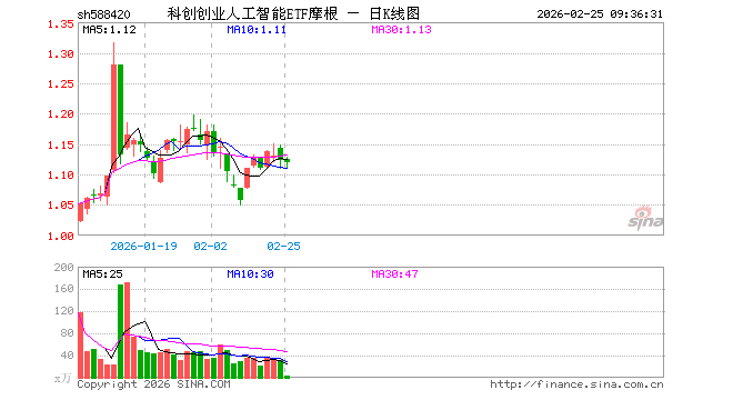 科创创业人工智能ETF摩根(588420)业绩比较基准为中证科创创业人工智能指数收益率,管理人为摩根基金管理(中国)有限公司,基金经理为曲蕾蕾,成立(2025-12-17)以来回报为12.31%,近一个月回报为-2.84%。