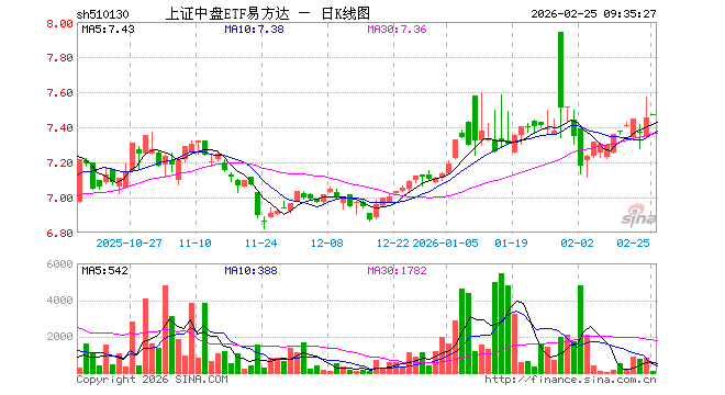 2月25日,上证中盘ETF易方达(510130)开盘涨0.24%,报7.472元。上证中盘ETF易方达(510130)重仓股方面,工业富联开盘涨0.78%,浦发银行涨0.00%,江苏银行涨0.29%,兆易创新跌2.18%,华泰证券涨0.09%,特变电工涨0.07%,福耀玻璃跌0.41%,华友钴业涨1.06%,上海银行涨0.20%,中国铝业涨0.85%。