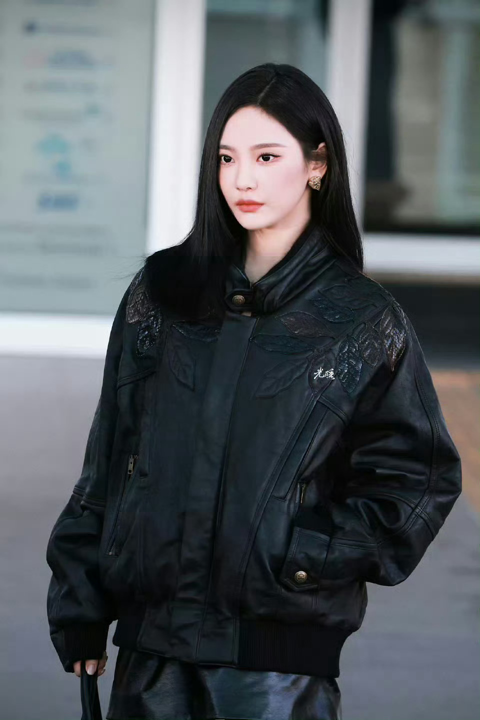 宁艺卓出发米兰时装周宁艺卓all black皮衣look