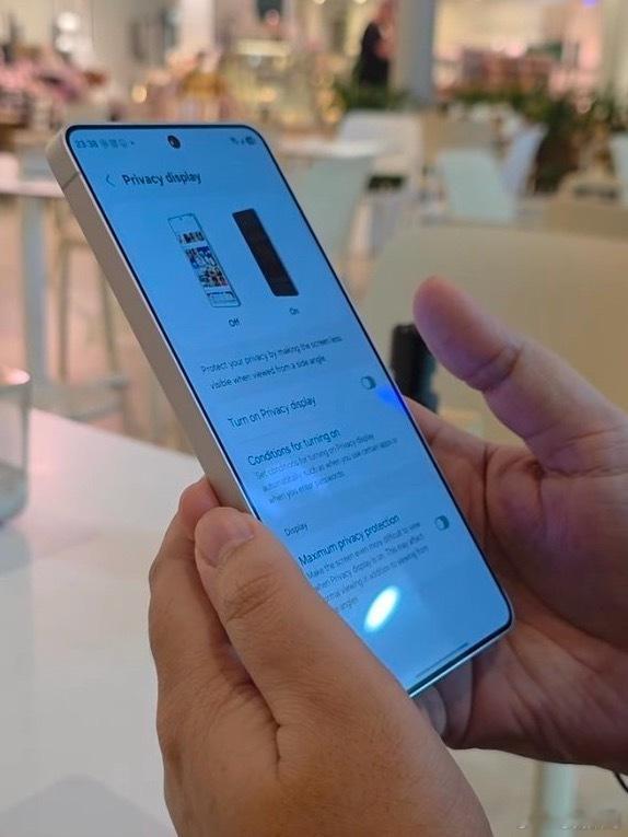 三星S26系列马上发布了,爆料称S26 Ultra将全球首发防窥屏,开启后只有你自己可以看到屏幕的内容,旁边的人看不到。有博主泄漏这个防窥模式可以调档位,图二防窥弱一些,图三几乎完全看不到了