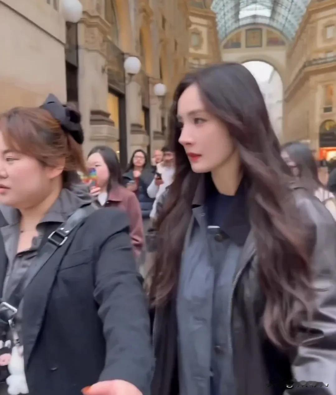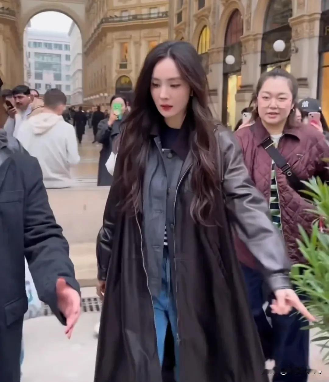 40岁杨幂比同龄人年轻许多 五官精致也有些许年龄感 穿衣风格很在线酷飒 眼神变得