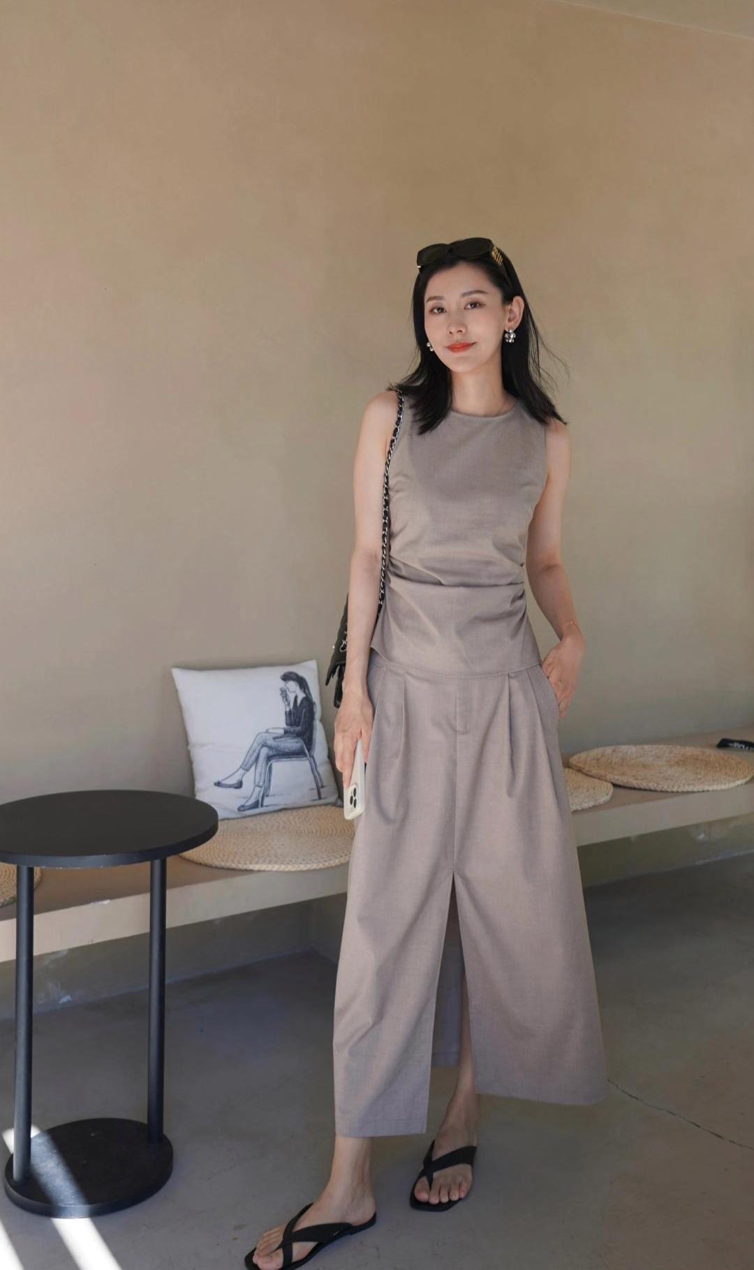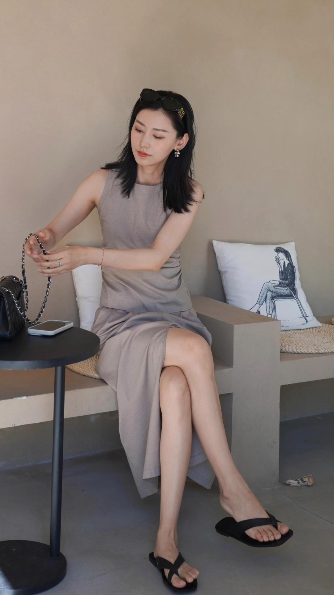白色雪纺衫搭配白色短裤,清爽又显腿长,配上同色系拖鞋,夏天这样穿又凉快又好看。
