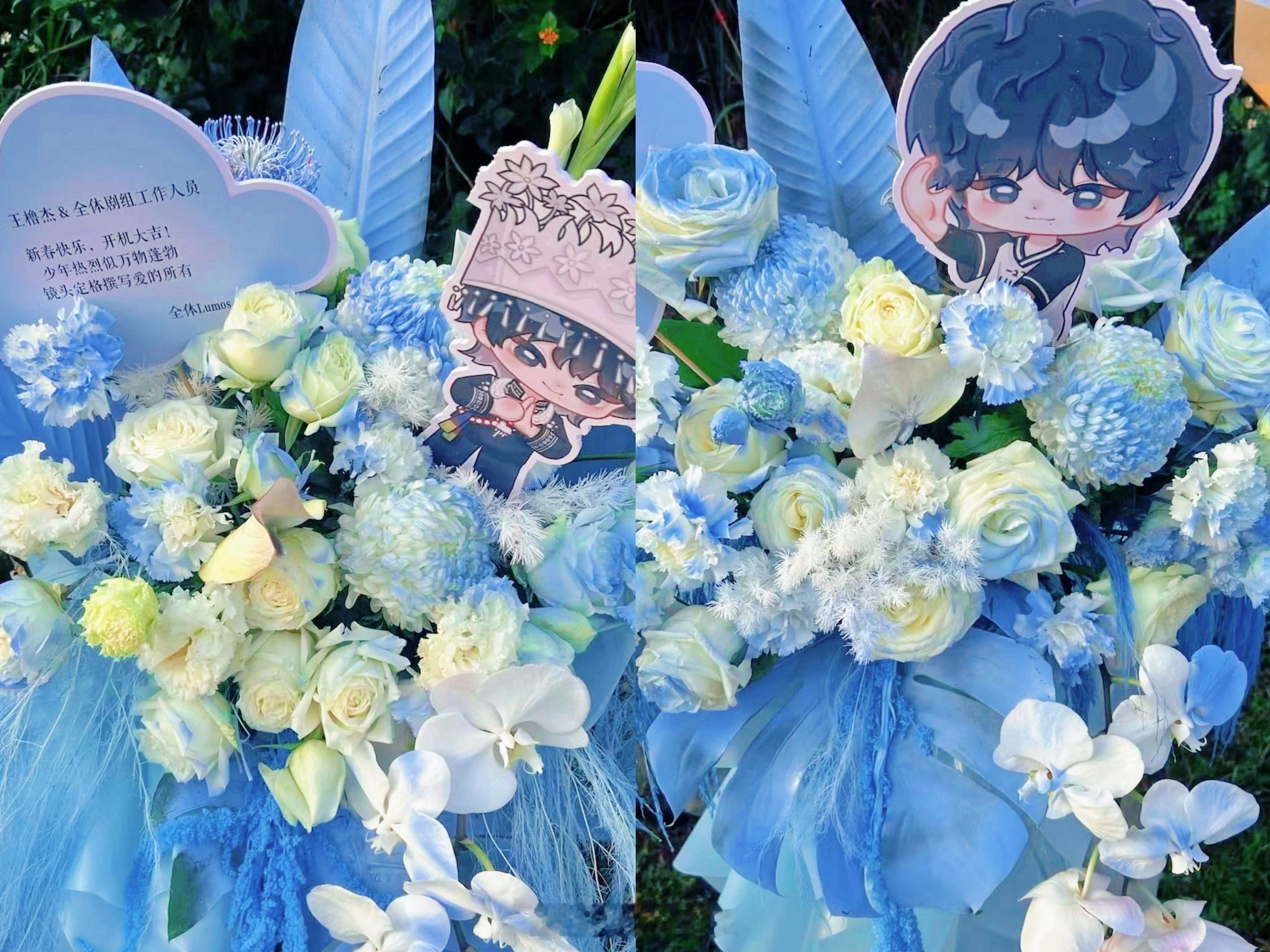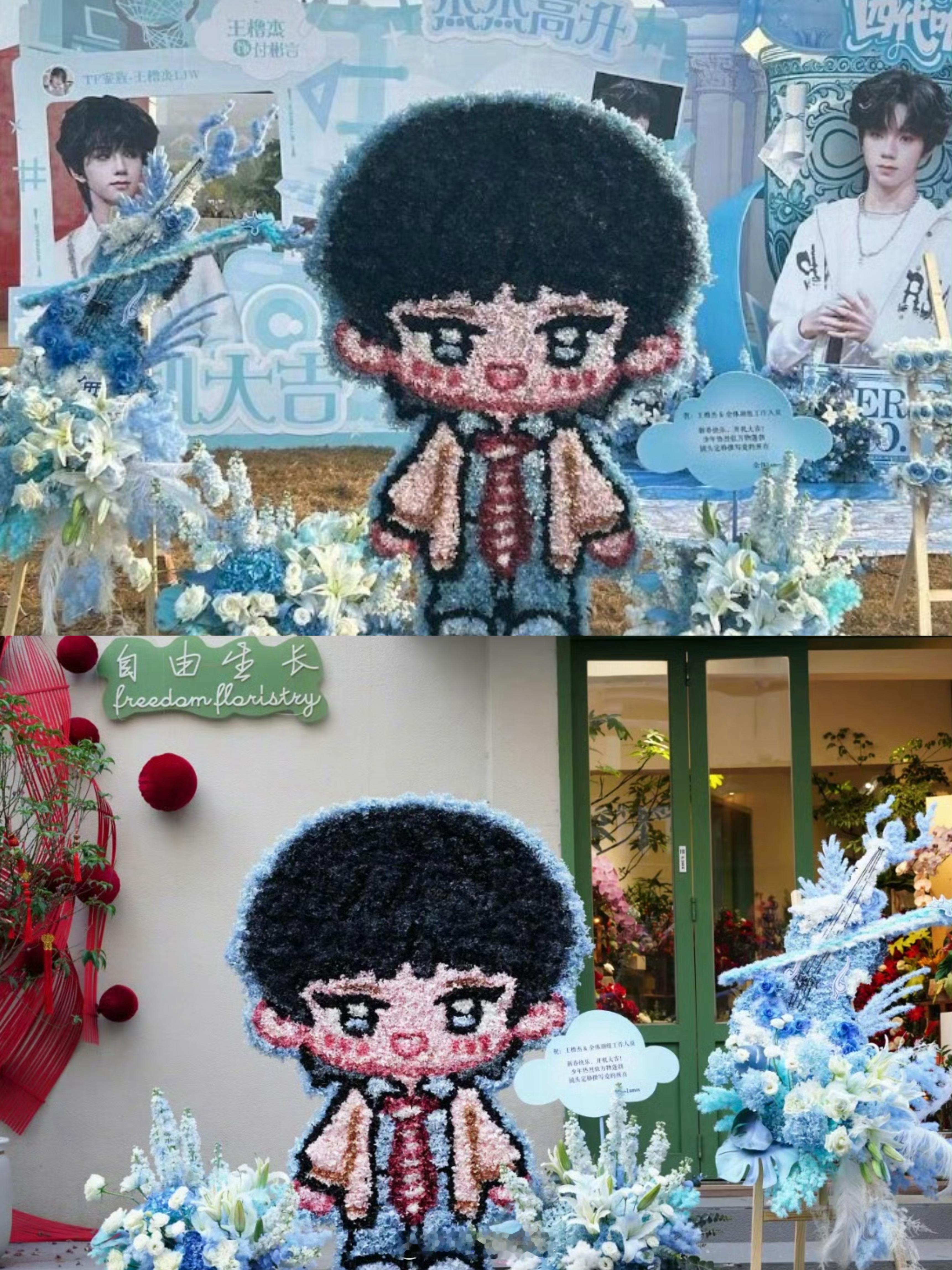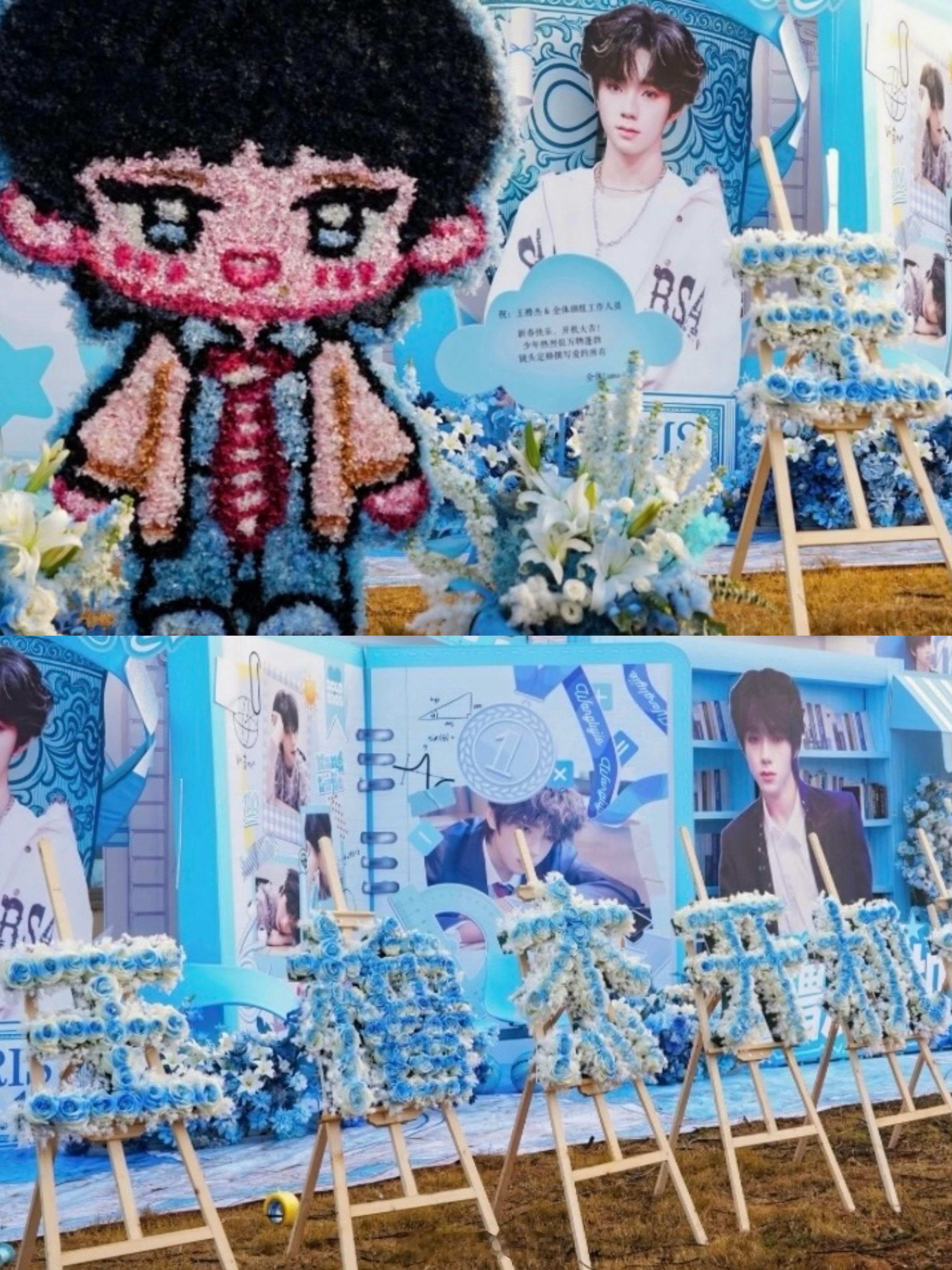 我们的少年时代2开机日🩵TF四代少年时代2开机应援 王橹杰开机应援墙太好看了吧,好有审美好漂亮啊!Q版应援花篮尊嘟太可爱啦,好萌呀!开机顺利,期待和新人演员王橹杰在角色中见~