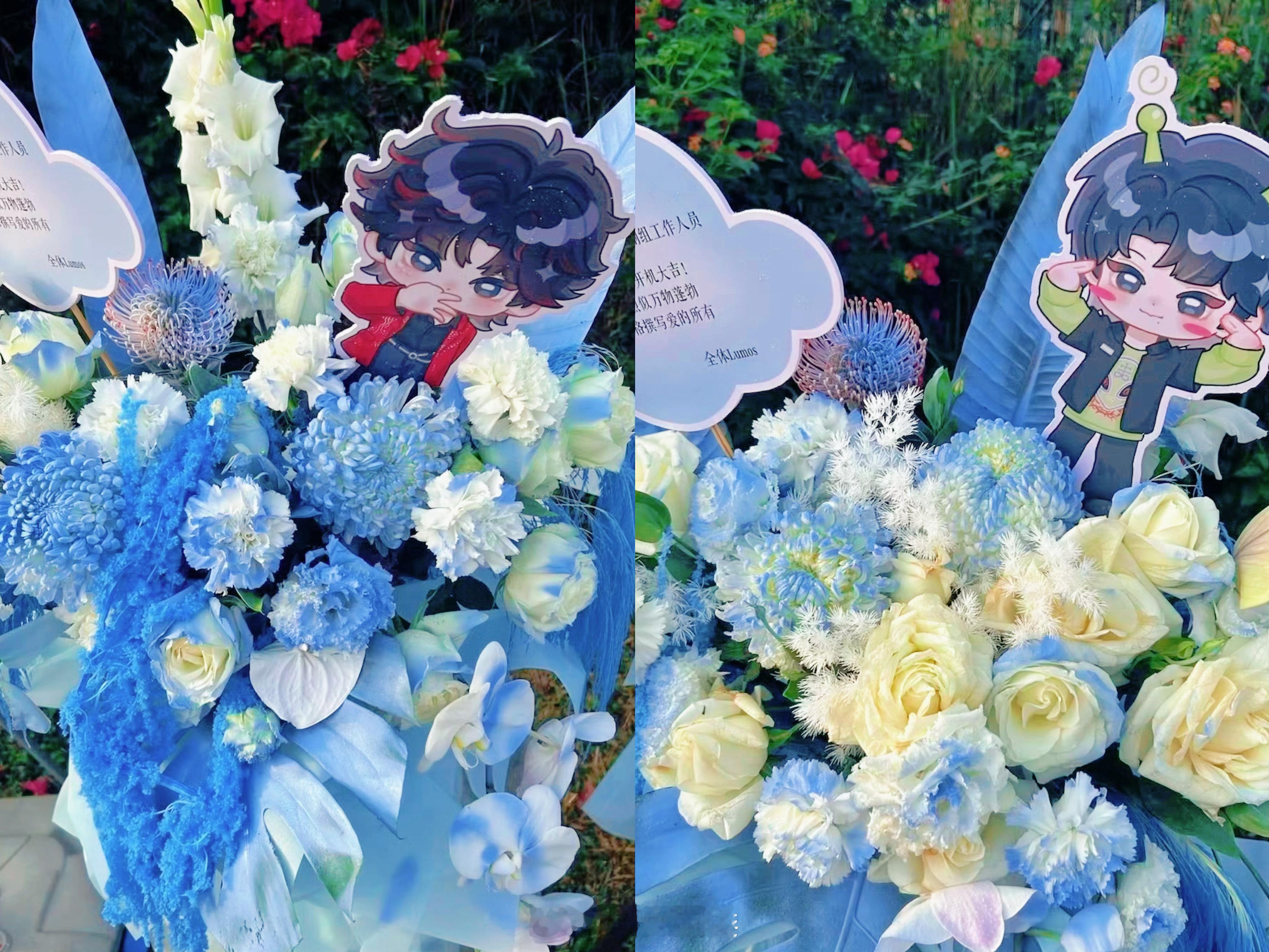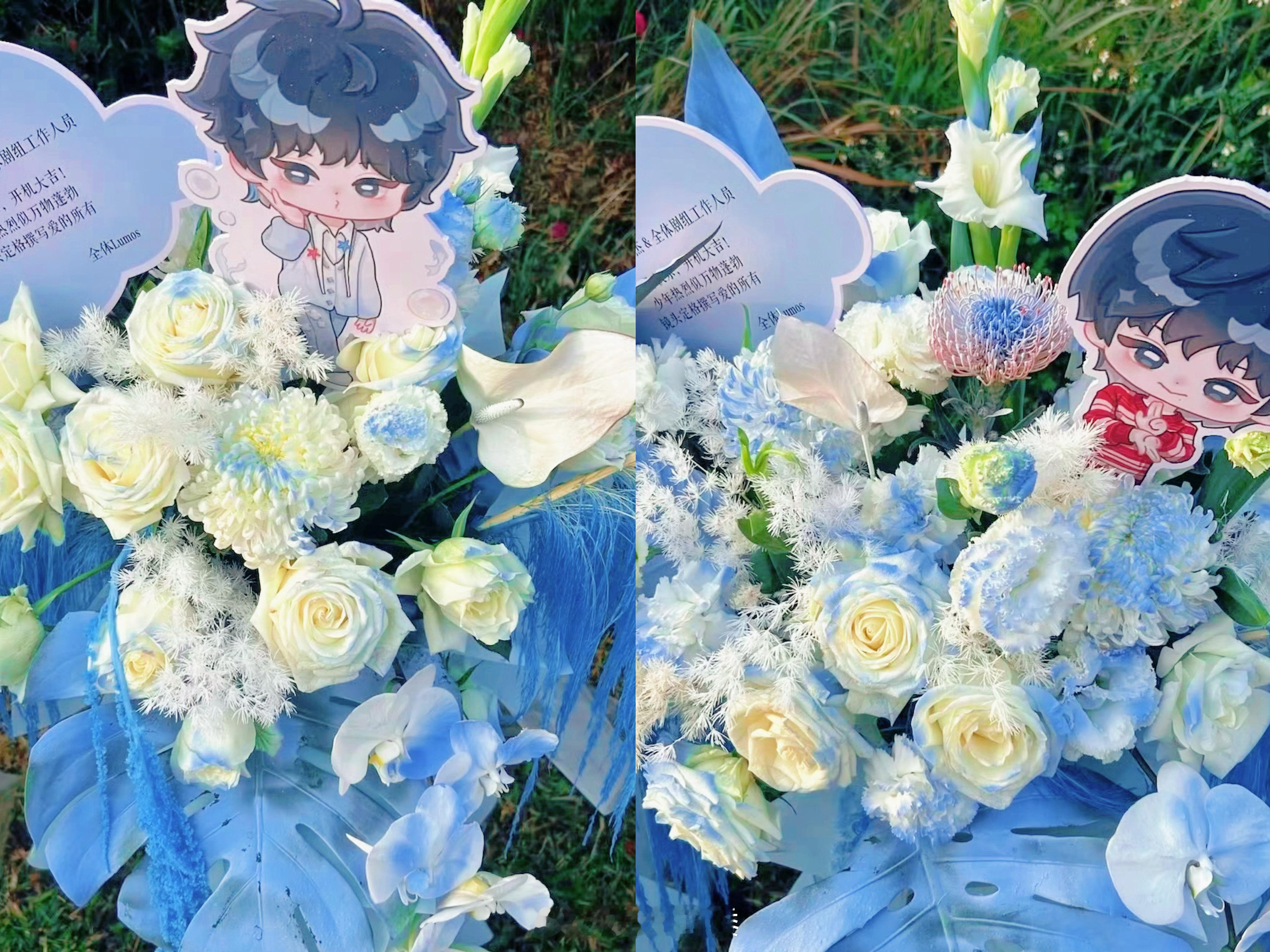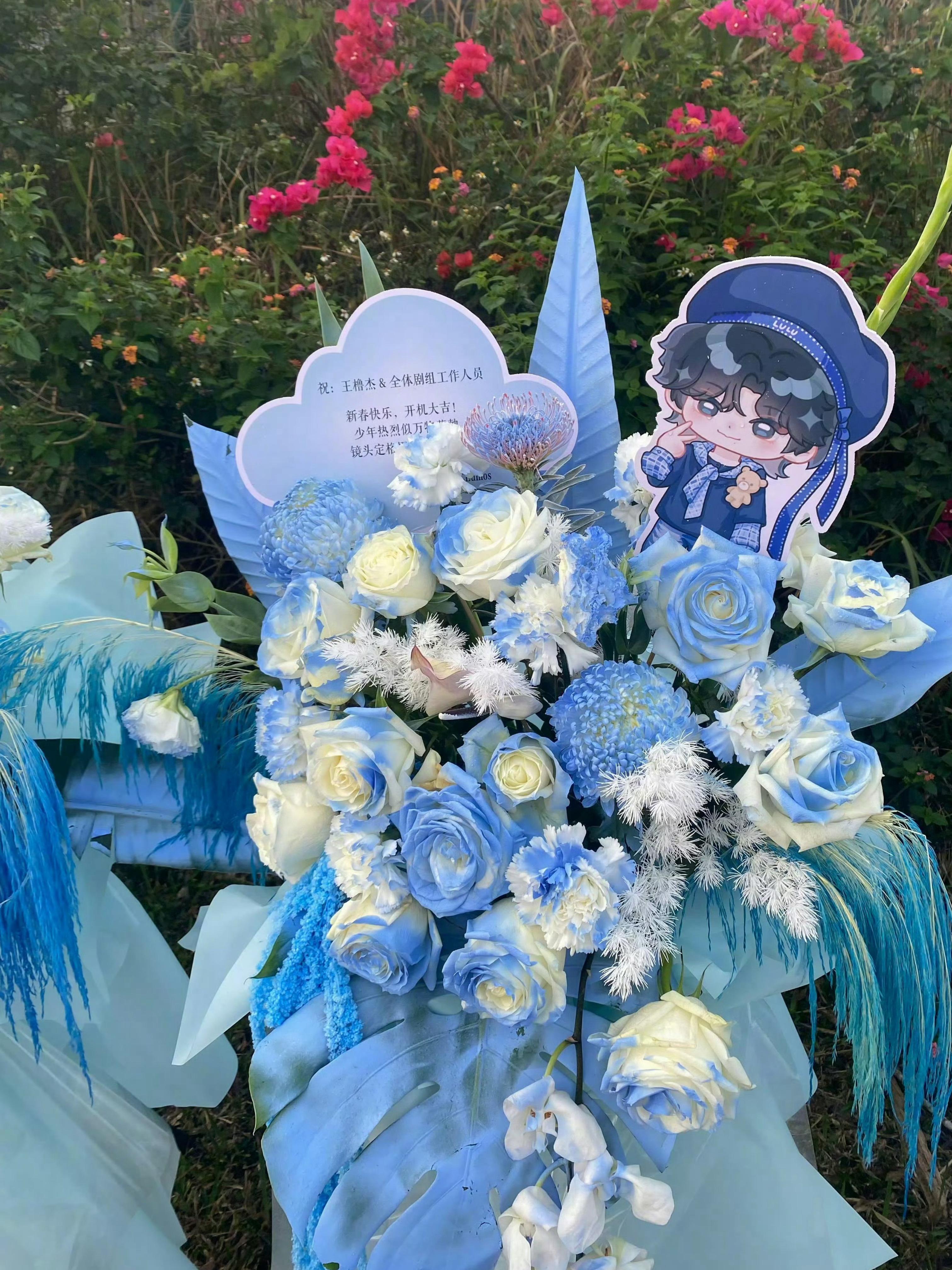 我们的少年时代2开机日🩵TF四代少年时代2开机应援 王橹杰开机应援墙太好看了吧,好有审美好漂亮啊!Q版应援花篮尊嘟太可爱啦,好萌呀!开机顺利,期待和新人演员王橹杰在角色中见~