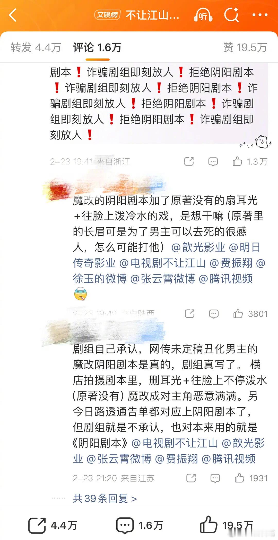 这两天是捅了什么配角加戏魔改的窝了吗?《不让江山》《剑来》《碧血蝉》都在维权
