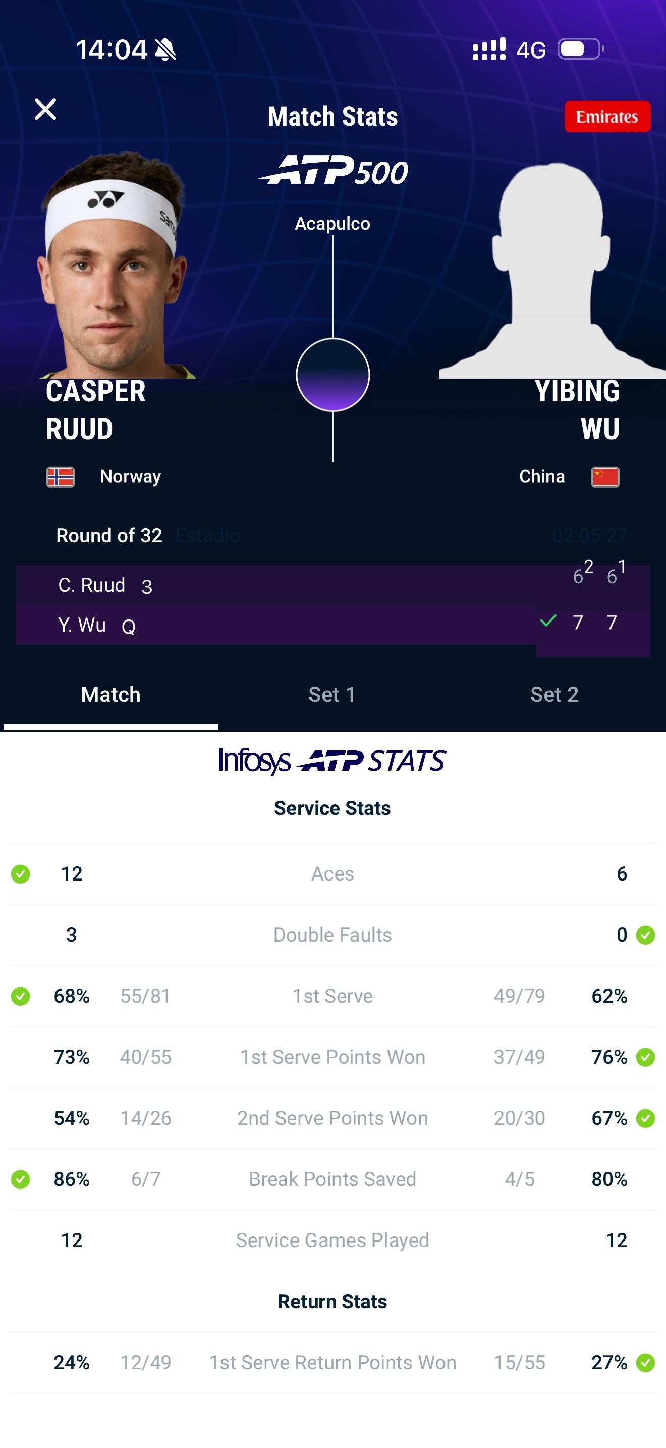 阿尔普尔科500赛首轮,面对3号种子鲁德,吴易昺再次打出职业生涯代表作,连续两盘抢7发威,凭借32记制胜分,以7比6、7比6击败3号种子,晋级第二轮!吴易昺vs鲁德