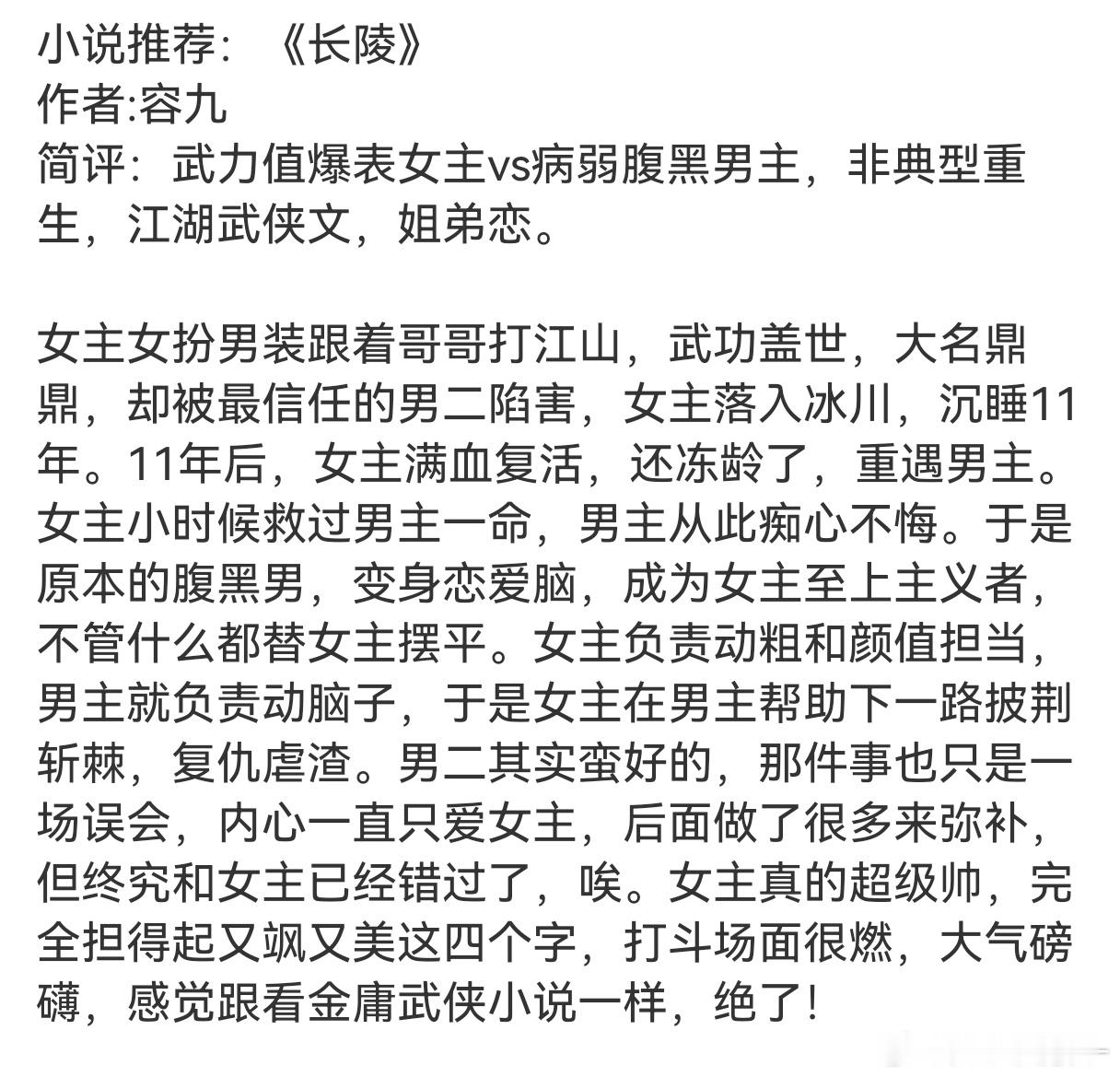 🍉《长陵》主演:卢昱晓➕徐振轩 导演:伊峥武侠言情,女主有绝世武功很飒,