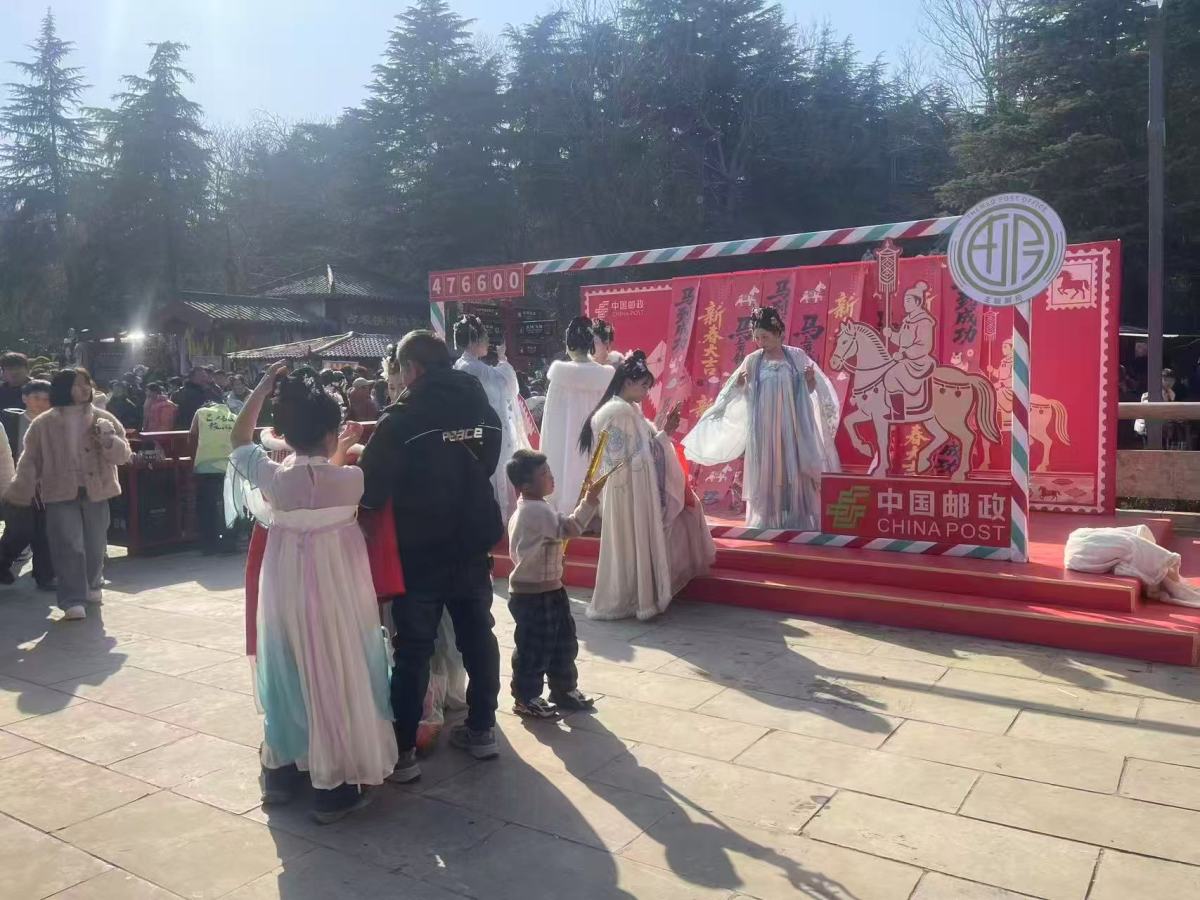 2月17日至18日,商丘永城市分公司紧扣芒砀山景区“天驷寻春序”主题,在芒砀山主题邮局开展“汉风邮驿·马跃芒砀”新春系列活动。走进主题邮局,古雅的四神云气图软膜灯箱高悬,身着秦、汉、唐、宋各式华服的游客穿梭其间,在仿汉邮驿柜台前驻足留影,传统邮政符号与衣冠礼仪之美在此刻交叠。