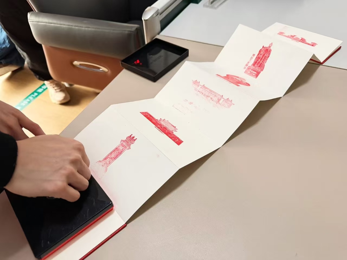 临时主题邮局内设置的四大区域各具特色,吸引游客纷纷驻足体验。文创产品区内,带有马年元素的明信片及文创用品备受青睐,游客们纷纷挑选,将“马上有福”的美好寓意带回家;图书阅读区内,游客们静坐一隅翻阅着文化书籍,在墨香中感受方寸之间的历史厚度;邮票大小版折展示区,集邮爱好者们驻足品鉴各种各样的邮票,还不时与同伴交流着集邮心得;新年氛围拍照打卡区内,游客们在邮政工作人员的祝福下定格新春影像,记录下这个充满邮政温度的马年春节。