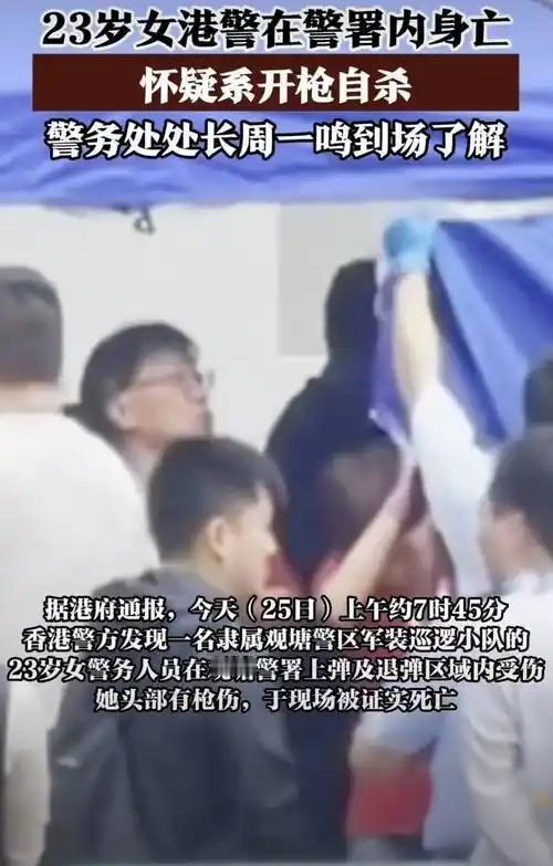 2月25日,香港一名23岁女警在观塘警署吞枪离世,现场发现其佩枪。据悉,女警去年