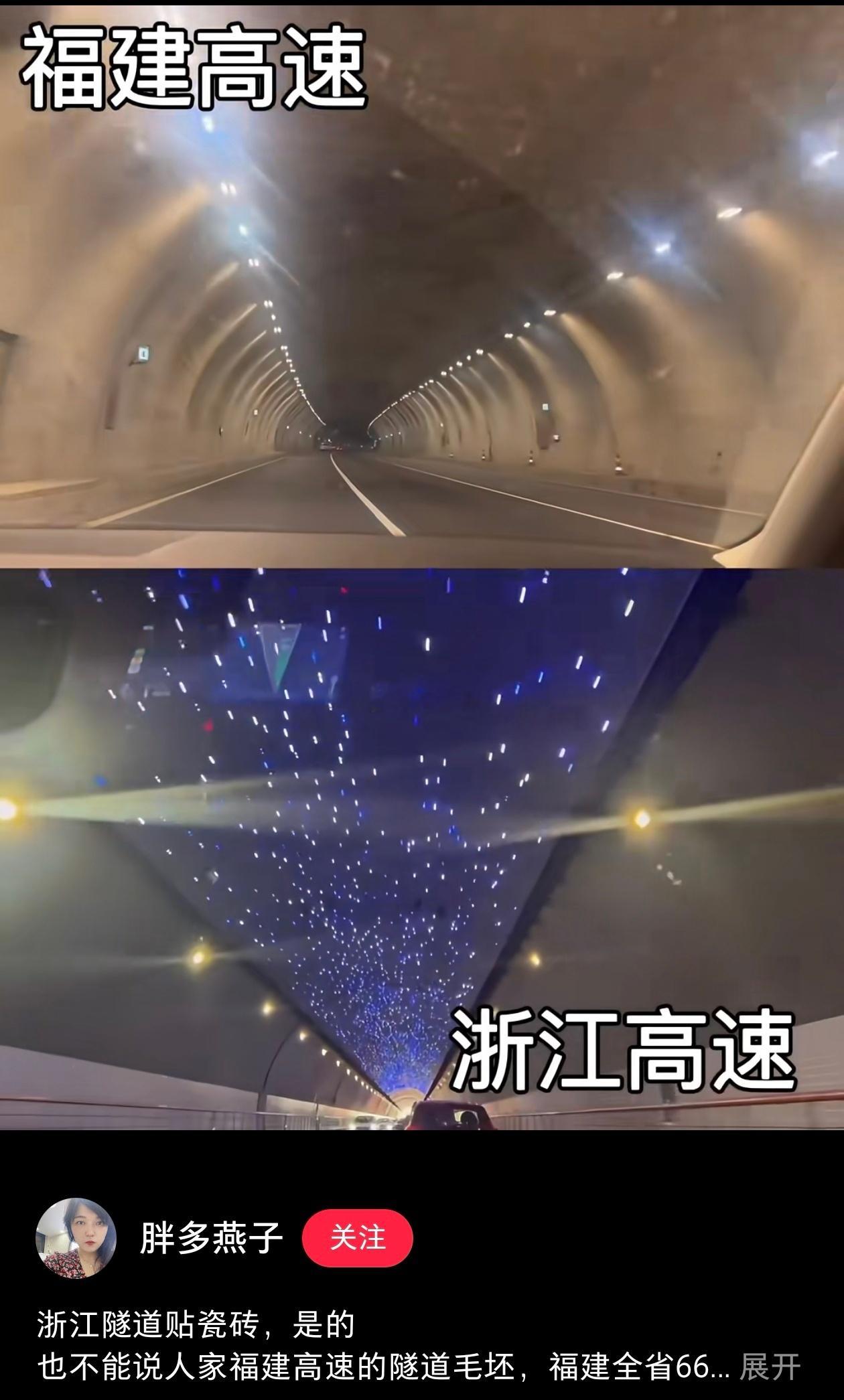 有不少浙江网友从福建自驾归来,笑称:福建的高速公路隧道是“毛坯”,浙江的高速公路
