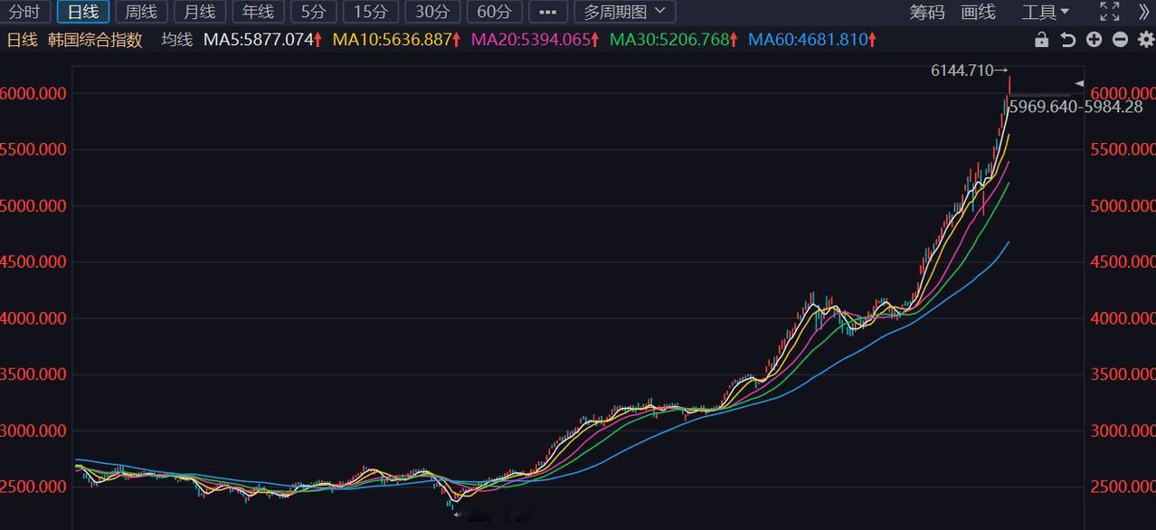 疯了!韩国准备大幅提高股市估值。 根据财联社的消息,韩国议会批准商业法案修订案,旨在提升股票估值。 去年韩国股指飙涨70多个点,今年才不到两个月,韩国股指再次大涨超40个点,直接突破6000点的关口,牛冠全球。 当大家觉得韩国股市涨的太狠的时候。好家伙,韩国自己还觉得不够,还觉得股市低估。 为此,韩国议会批准商业法案修订案,旨在提升股票估值。 不知各位看官,看到韩国的这个举动,有什么感想? 是不是觉得有点疯了? 当我们这边觉得股指快速突破4000点的时候,必须通过大幅压单来控制慢牛节奏的时候。韩国则直接改法案,还要促进估值飙涨。 不得不说,韩国这个举动真的有点激进了。一旦华尔街想通过地缘局势或者其他故事来来做空韩国股市的时候,到时会不会是一地鸡毛?