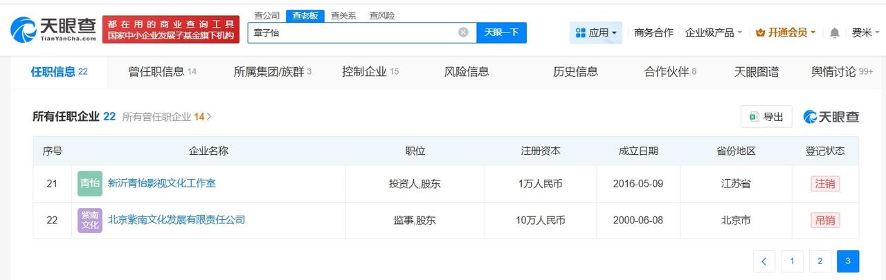 章子怡田栩宁暂无商业关联 章子怡名下关联22家企业章子怡取关工作室换成田栩宁 2月24日,章子怡先关注田栩宁工作室,随后迅速取关该账号,转而直接关注田栩宁个人账号,该动作引发网友热议。 天眼查App显示,章子怡名下关联22家企业,其中10余家企业处于存续状态,包括深圳兴旺红筹回归投资中心(有限合伙)、北京青山基业天使投资合伙企业(有限合伙)、北京阿丁特科技有限公司等,其他10余家企业已注销或者被吊销。值得注意的是,章子怡与田栩宁无商业关联。 天眼查信息:-c2342689297
