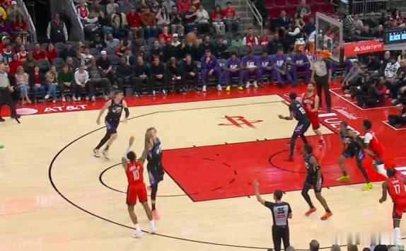 6789申京左侧肘区面框持球单打菲利,吸引克利尔前来执行“延迟夹击”,与此同时弱侧的贾巴里沿三分线无球跑动上前接应,接申京出球后迎着贝利扑防,三分手起刀落。