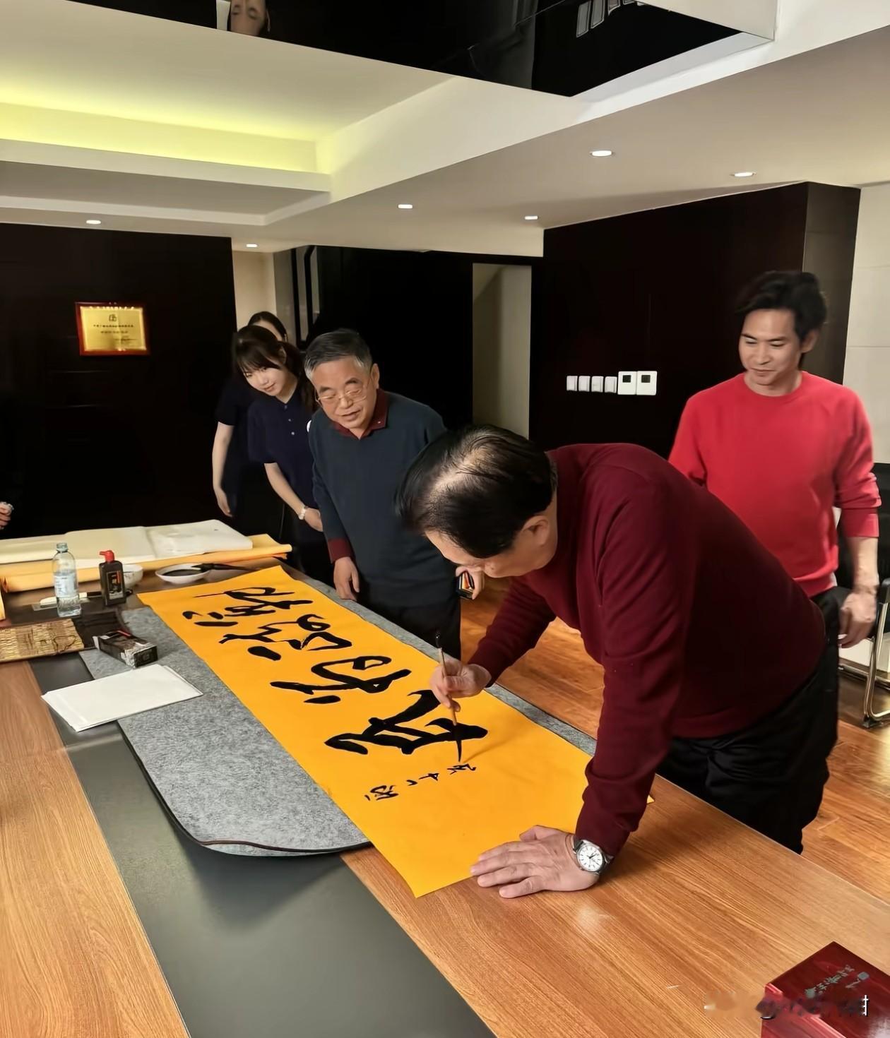演员唐国强为某变压器厂题字。 某厂二代晒出了唐国强的书法作品。 在宽大的办公桌上,唐国强俯身一连写了好几副,有“相濡以沫”、“励精图治”等,字迹浑厚有力,行草书,很有个性了。 最后几人拿着唐国强的作品,合影留念了。该厂二代表示,本来以为出差搬砖的,居然有意外惊喜!在公司接待了她的偶像,唐国强老师本人很儒雅了。 以前只听过唐国强的为挖掘机代言,这有接触变压器,看来唐国强老师这是机械、电气都抓了。这赛道一般明星可来不了。 对此,你们怎么看呢?