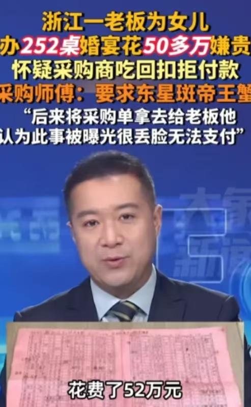 想白嫖?浙江,男子花52万给女儿办婚宴,一口气摆了252桌,可没想到,婚宴结束后,男子却以“海鲜价格虚高、质量不达标、怀疑王师傅吃回扣”为由拒付费用,不仅饭钱不给,而且连提供250多桌餐具的供应商,也没给钱!网友:不付款不是因为席太贵,而是因为没收回来钱! 这件事发生在浙江嘉兴桐乡,涉事的是当地一位钱老板。 2025年4月,他为女儿操办婚宴,特意把规模拉满,连办三天流水席,一共摆了252桌。 每桌安排28道菜品,钱老板明确要求,必须上东星斑、帝王蟹、澳洲龙虾这类高档海鲜。 他找了相识十多年的猪肉商王师傅全权采购,出于信任,没签书面合同,也没付定金。 王师傅按厨师的菜单备货,所有食材送到现场时,钱老板这边都有人当场称重、验货。 三天宴席顺顺利利办完,算下来食材总费用刚好52万元,全是王师傅垫付的。 谁也没料到,婚宴一结束,钱老板立刻变了脸。 他挑出各种理由,说海鲜价格虚高、质量不达标,还怀疑王师傅吃了回扣,一分钱都不肯付。 不光是王师傅的食材款,负责提供250多桌餐具的供应商,同样没拿到一分钱。 供应商多次讨要,钱老板要么避而不见,要么找借口推脱,彻底耍起了无赖。 这事传到网上,网友一眼就看穿了真相。 大家都觉得,他不是嫌菜贵,而是摆了这么大的排场,收的礼金没达到预期,觉得回本亏了,想赖掉这笔开销。 十几年的熟人交情,在钱面前变得一文不值。 王师傅被逼得没办法,只能请律师起诉,用法律途径讨回自己垫付的血汗钱。 案件经过审理,在2026年2月迎来一审判决。 法院结合现场验货记录、本地食材行情,最终判定钱老板支付44.7万元货款及相应利息。 这场闹剧,说到底是把人情喜事当成了生意算计。 办婚宴图的是团圆喜庆,不是赌桌上下注,算着礼金回本的心思,从一开始就歪了。 为了面子硬撑排场,事后又想赖账,既丢了人品,也寒了身边人的心。 熟人之间的信任,经不起这样的消耗,一次赖账,往后再没人敢真心帮忙。 现在很多人办喜事,陷入了攀比的怪圈。 排场越摆越大,开销越花越多,最后把喜事变成了负担,甚至闹成官司,实在得不偿失。 不管是生意往来,还是熟人帮忙,消费了就该付钱,这是最基本的做人底线。 提前规划好预算,别打肿脸充胖子,才能让喜事真正圆满,不留后患。 办婚礼是为了纪念幸福,不是为了算计得失。 把人情看得比利益重,守住诚信的底线,才是为人处世最该有的样子。 各位读者你们怎么看?欢迎在评论区讨论。