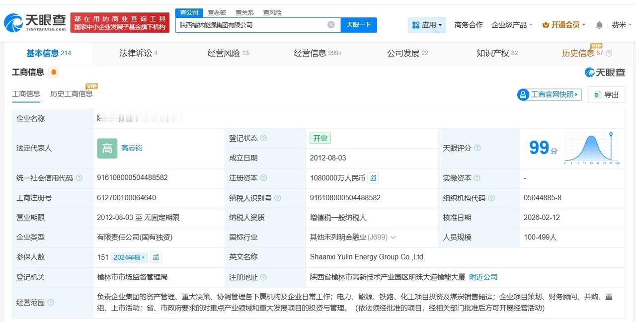 陕西榆林能源集团增资至108亿 增幅约14% 天眼查App显示,近日,陕西榆林能源集团有限公司发生工商变更,注册资本由95亿人民币增至108亿人民币,增幅约14%。 该公司成立于2012年8月,法定代表人为高志钧,经营范围包括负责企业集团的资产管理、重大决策、协调管理各下属机构及企业日常工作等,由榆林市人民政府国有资产监督管理委员会全资持股。 天眼查信息: