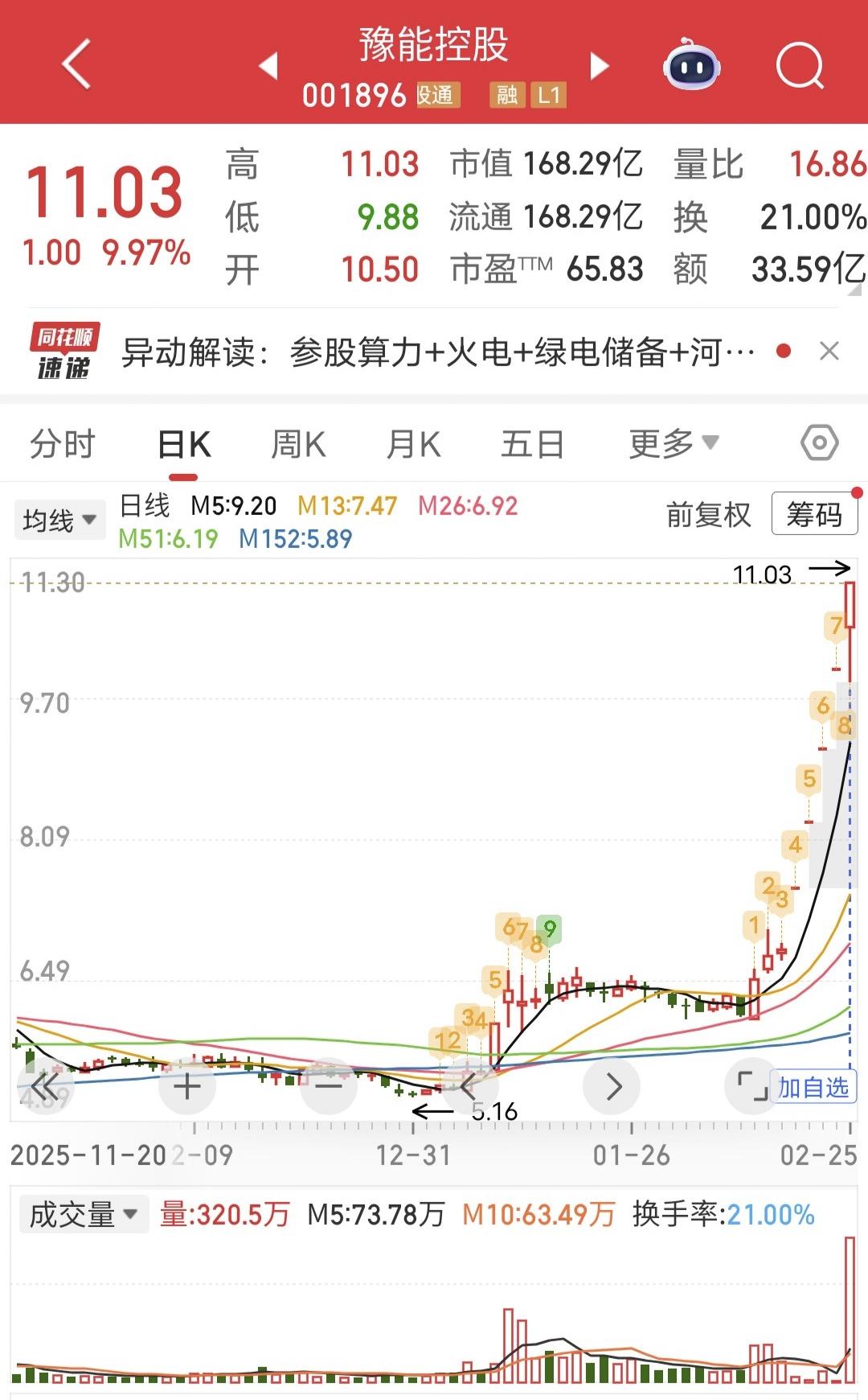 连板高标(2月25日)5板--豫能控股,参股算力;4板--汉缆股份,特高压