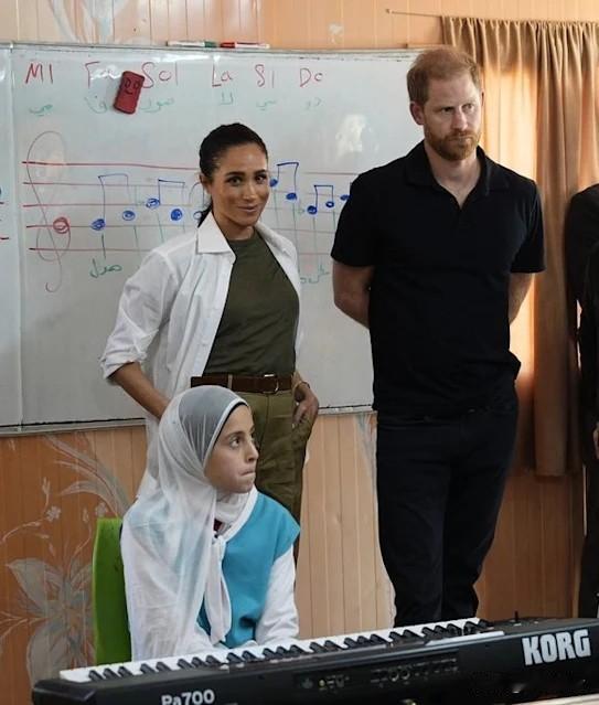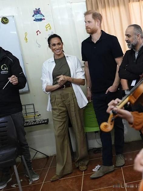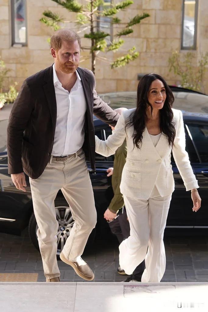 难得一刻!哈里梅根参加“王室”公务活动! 哈里王子和梅根王妃,前往约旦,进行为期两天的慈善访问活动。这也是哈里梅根许久以来的首次正式出访行程。 梅根今天有两套造型,第一套是白色西装套装,模仿的是凯特一直以来的风格。第二套略显休闲,橄榄绿打底加白色衬衫,再搭配橄榄绿裤子。 虽然梅根的粉丝总是批评凯特穿衣服风格无聊,但梅根也知道什么场合穿什么衣服啊,正式场合梅根也穿的一本正经,不能像走红毯那样袒胸露乳[捂脸][捂脸][捂脸]