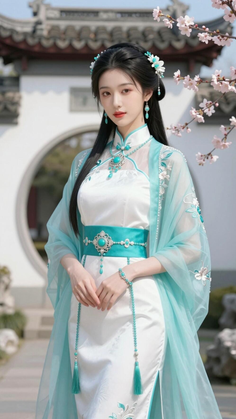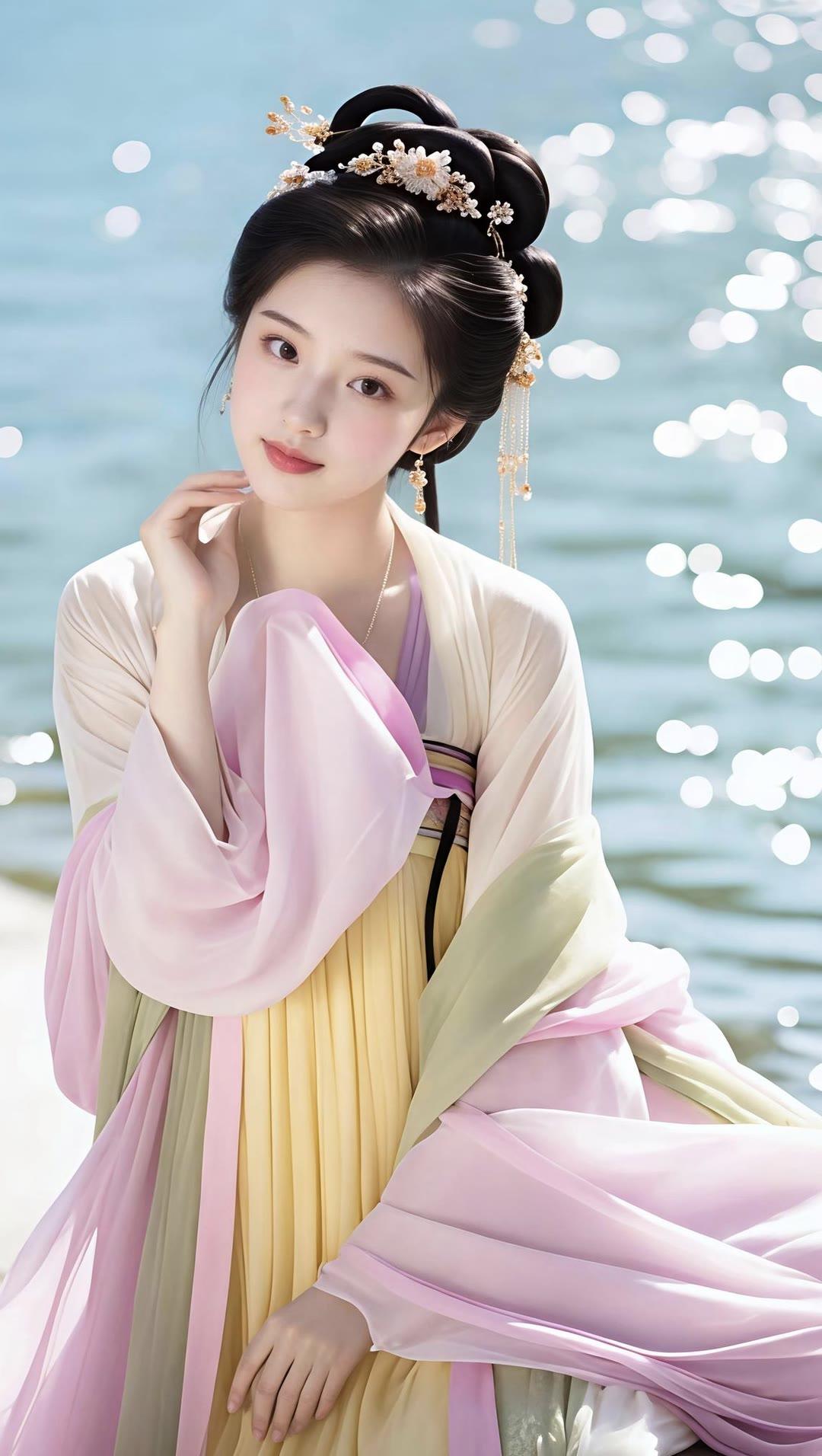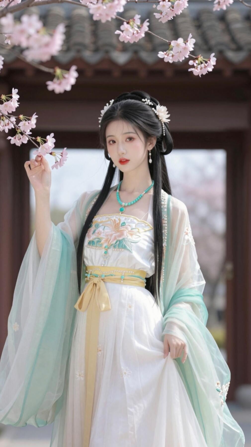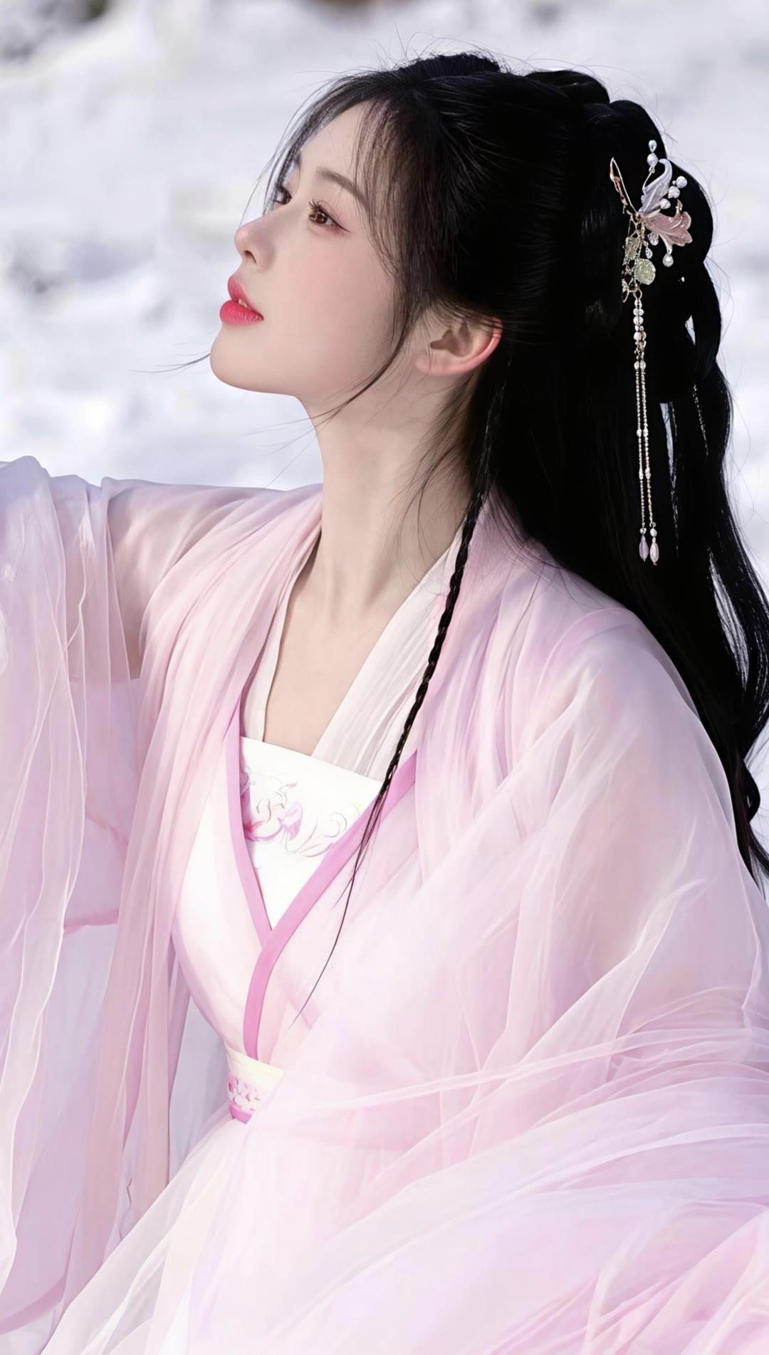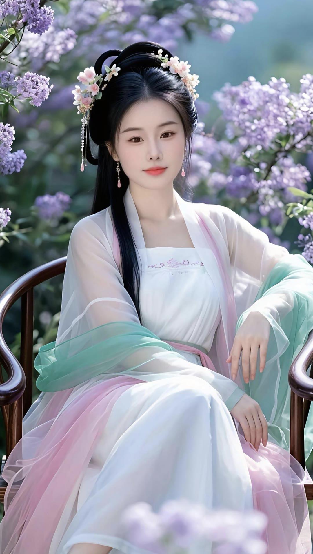 温柔古风少女,花海中的仙气女神