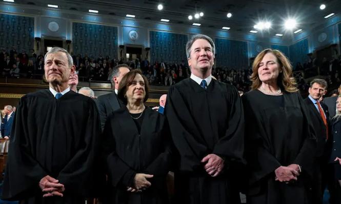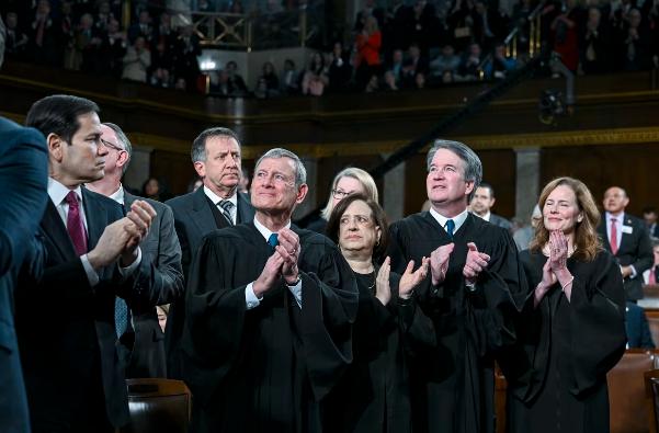 多么尴尬。当特朗普在国会发表国情咨文演讲时,国会大厦前排的听众,正是他四天前痛斥的一群人——美国最高法院的大法官们。 而在演讲中,他也把注意力直接转向了坐在会议室里的最高法院大法官,抨击他们最近以6比3的裁决,该裁决取消了根据《国际紧急经济权力法》征收的关键关税,重创了"美国优先"的经济议程。 当包括两名特朗普任命的大法官在内的法官们宣布这项全面关税政策违法且违宪时,特朗普曾斥责这一裁决"不爱国",并称那些对他做出不利裁决的法官是“我们国家的耻辱”“不忠于宪法”。