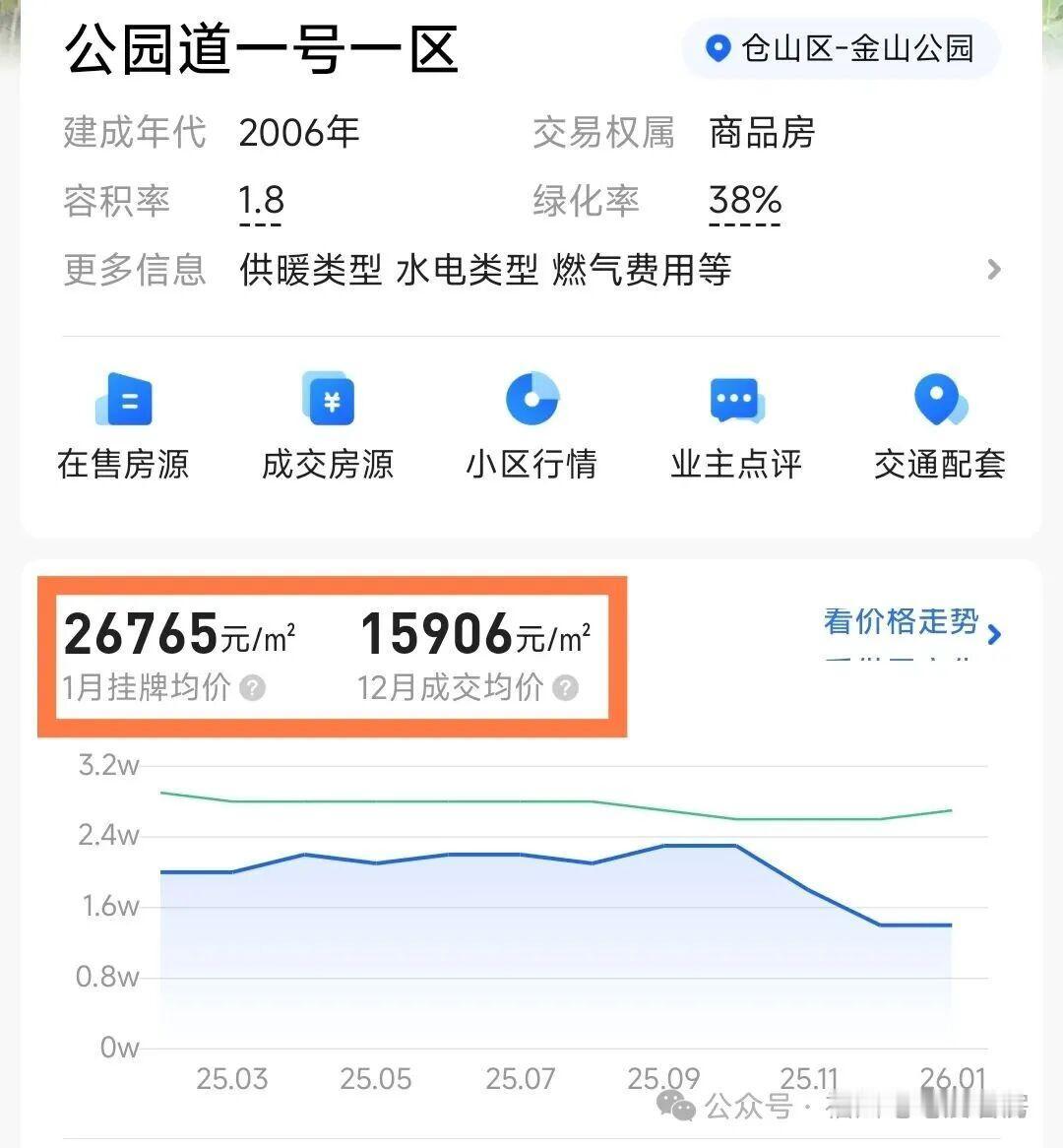降至1.6万/㎡!福州金山一楼盘房价跌近“腰斩”?[惊呆] 近日,有网友发现位于金山板块的楼盘【公园道一号一期】成交了一套138㎡三房,中间楼层,而成交单价仅16472元/㎡! 说这个价格大家可能有点陌生,但与楼盘的挂牌均价2.7万元相比,相差接近一万元,1.6/2.67=0.599251,成交价仅挂牌价的60%!成交的房源远远低于挂牌价格。 作为金山早期高端盘,公园道一号社区成熟、环境好、户型方正、会所配套全、小区划片仓山区第五中心小学,对应四中桔园洲中学。有人说它定义了金山的高端居住标准,如今却以“1.6万”的价格重回大众视野,令人唏嘘。