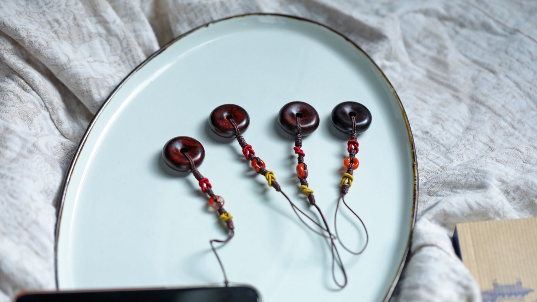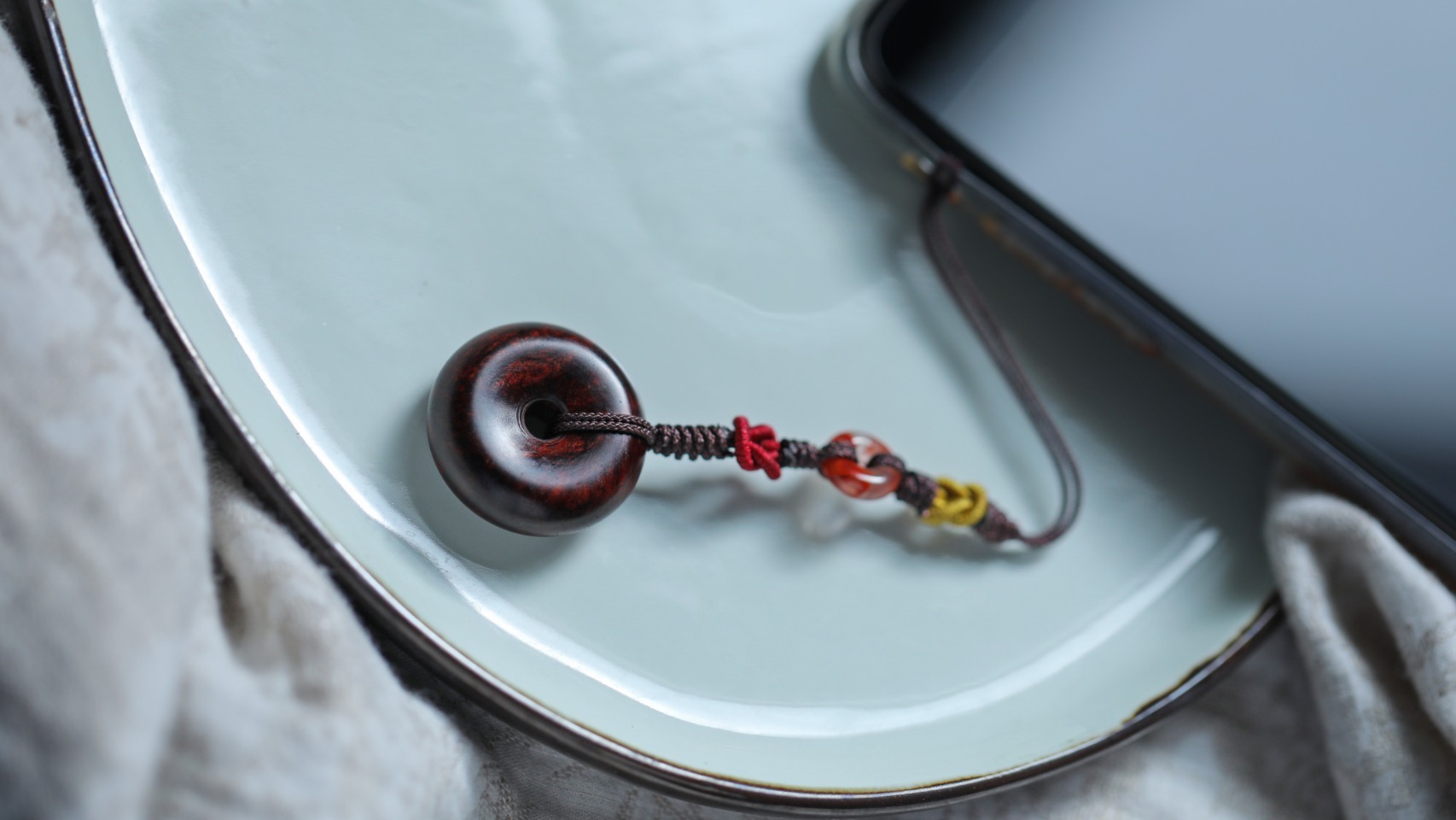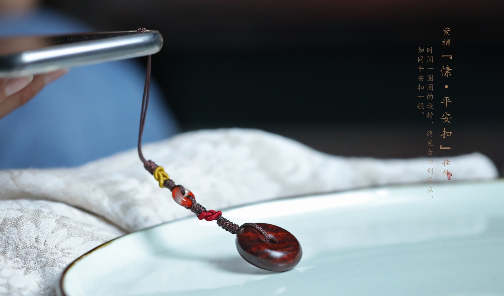 紫檀【愫 · 平安扣】挂件时间一圈圈的旋转,终究会回到原点,如同平安扣一般。平安