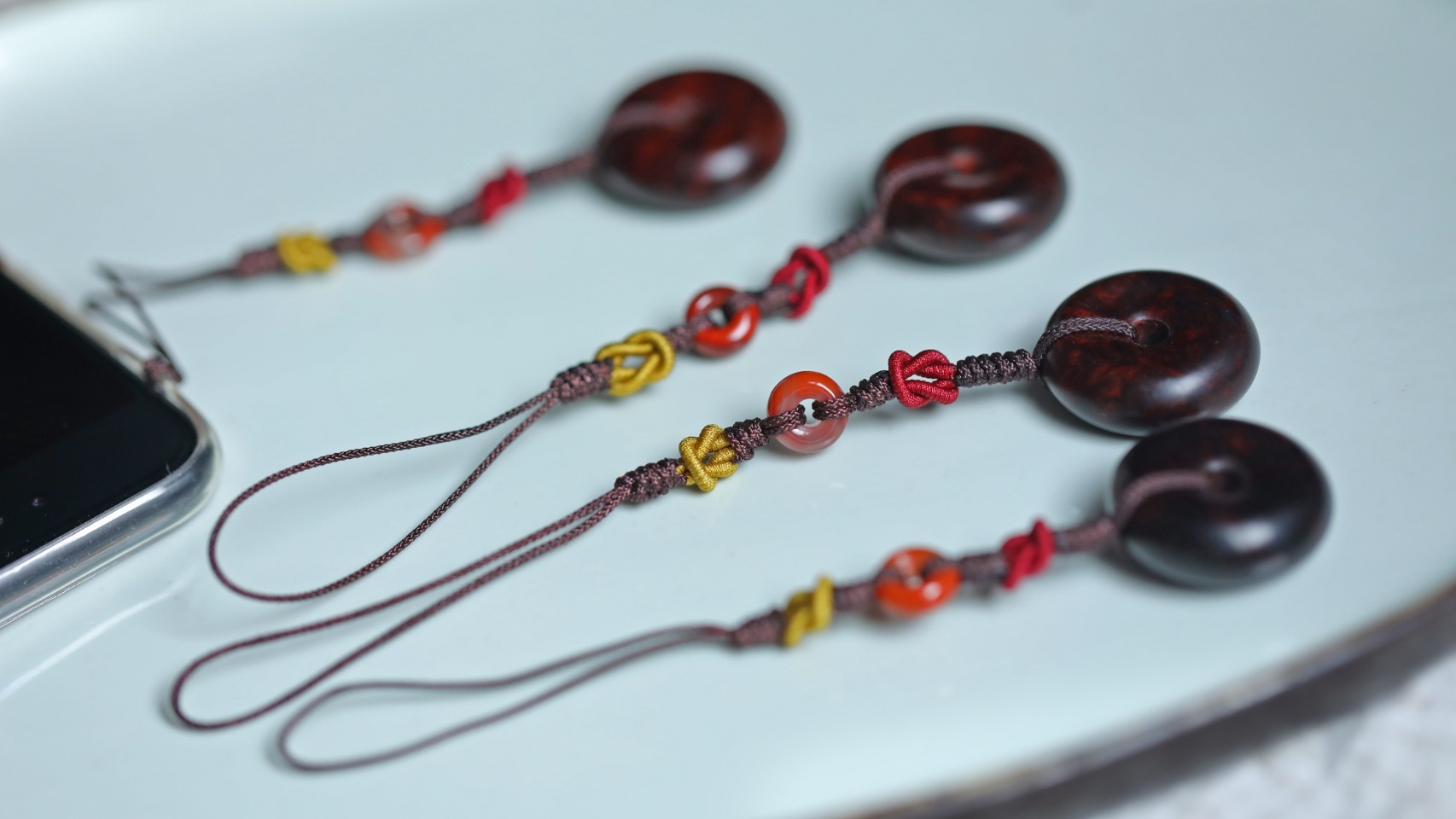 规格:26mm*9mm 小叶紫檀【愫 · 平安扣】挂件 手机挂 钥匙挂
