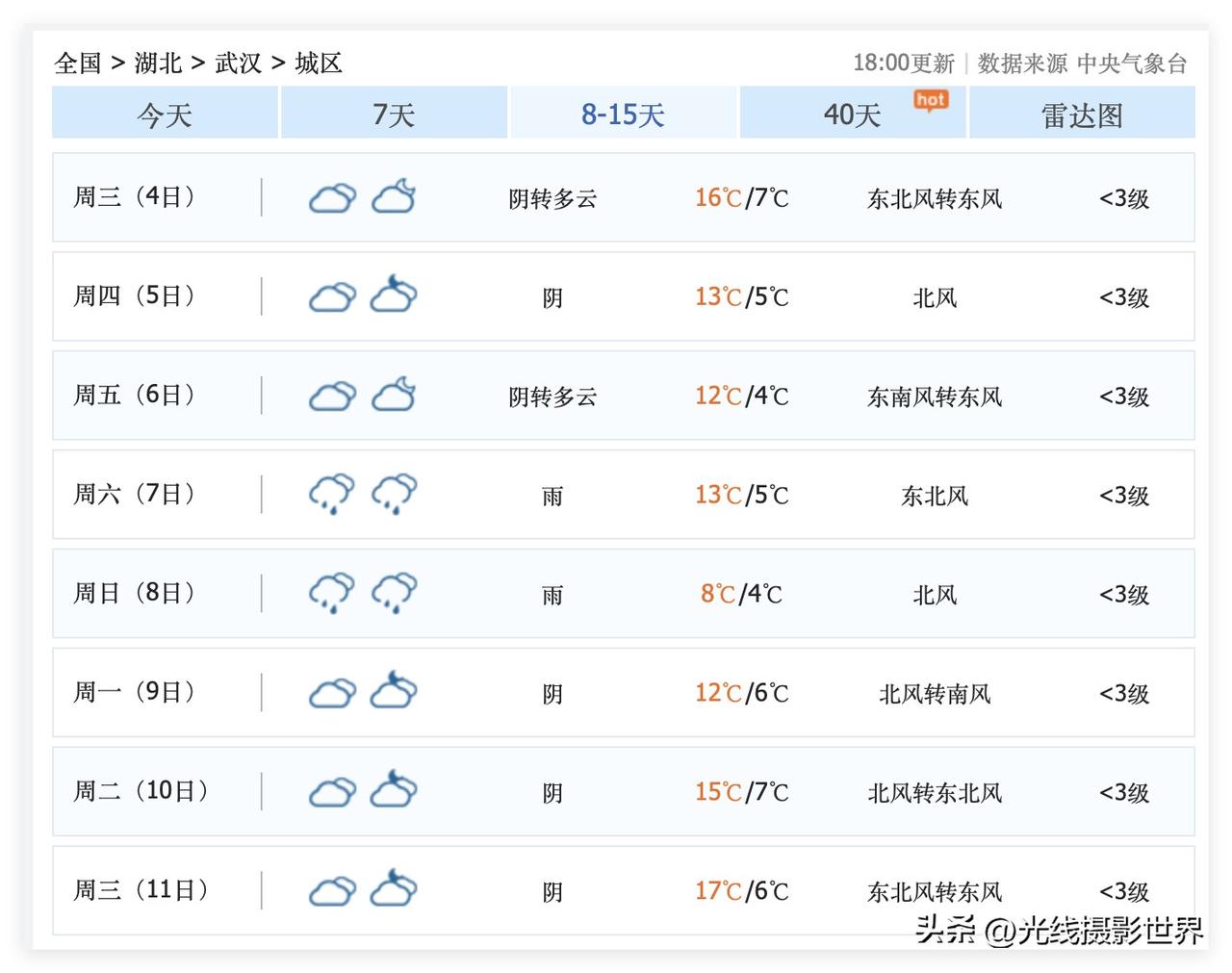 2个坏消息,1个好消息!湖北省武汉市,3月3日,元宵节,不下雨,要出太阳,这是好消息!但是……问题是,2月26日到3月1日,武汉阴雨连绵,气温低迷…… 再然后,超级计算机认为,3月7日到11日,武汉再次阴雨连绵……气温低迷……冷空气来袭…… 好吧,武汉人,那就好好计划一下3月2日到6日的出游计划或者赏花计划吧! 3月3日,武汉多云,气温14-8度,还是很适合闹元宵的,这个元宵节,武汉天气很不错啊!