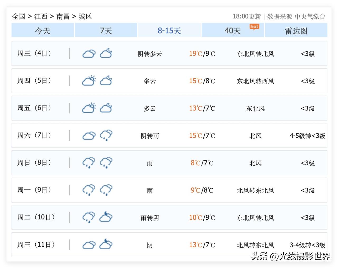 超级大喜讯!3月3日,元宵节,江西省南昌市,不下雨,太棒了!非常适合闹元宵!但是,问题是,2月26日到3月1日,南昌市阴雨连绵,几乎每天都要下雨,阴冷潮湿……气温低迷…… 再然后,虽然3月3到6日的南昌天气不错,经常出太阳…… 但是,超级计算机认为,3月7日到11日,可能会有新一轮冷空气南下……南昌可能会再次跌回寒冬的冰窟窿! 3月8日,三八妇女节,南昌下雨,气温8-7度。 …… 好吧……总体来说,南昌接下来,气温波动比较频繁,大家要多多注意……