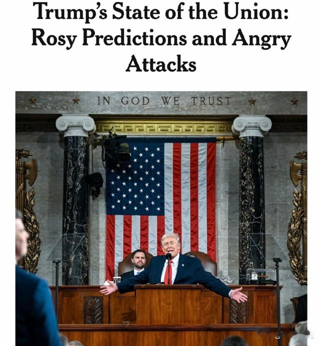2026国情咨文,总统情绪最激动的时刻,是要求地方政府不要为非法移民提供庇护、以及学校不要为学生做变性手术 民主党议员拒绝集体起立鼓掌,Trump愤怒地说:这些人简直是疯了These people are crazy! ​​​ 最高法院九名大法官,只有四人参加了国情咨文 因为投票取消关税,被Trump指责最多的Gorsuch,没有出现 但Trump还是和首席大法官、以及另外三名,礼节性地握手 讲话中也没有过多攻击高法判决,只是称之为“非常糟糕”,并发誓“会想办法补回来” ​​​ 国情咨文中,国际形势提及伊朗较多:去年核设施被摧毁、现在又重建、不肯承诺“无核”、杀了三万多抗Y者、是持续的威胁… 提及俄乌非常简短,称之为“会是我阻止的第九场战争”,重复“如果我是总统,不会打起来”,“北约在花钱买武器给乌克兰,我们不白给”等等 ​​​ 总统离开白宫、前往国会之际,向媒体发布了演讲稿提纲 重点是:经济 主线是:建国二百五十周年 基本结构:美国很伟大➡️被民主党搞得不伟大了➡️第一任再次伟大、第二任刚一年就史无前例地伟大➡️中期选举别选民主党,再给我三年,美国会更伟大 ​​​