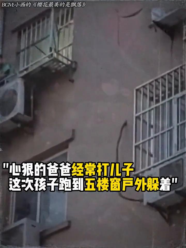 BGM小西的《樱花最美的是飘落》。 爸爸长期家暴儿子,儿子纵身一跃。心狠的爸爸经常打儿子,这次孩子跑到五楼窗户外躲着。不能打了,爸爸依旧不放过儿子。儿子下定决心往下一跳。逮住哪能打呢?下边的群众心疼坏了,阿姨都不敢看这个孩子。没有事打120没有事。樱花最美的时候是飘落,像你只是短暂的。我曾经为你付出的那么多,你却用离开证明不爱我。