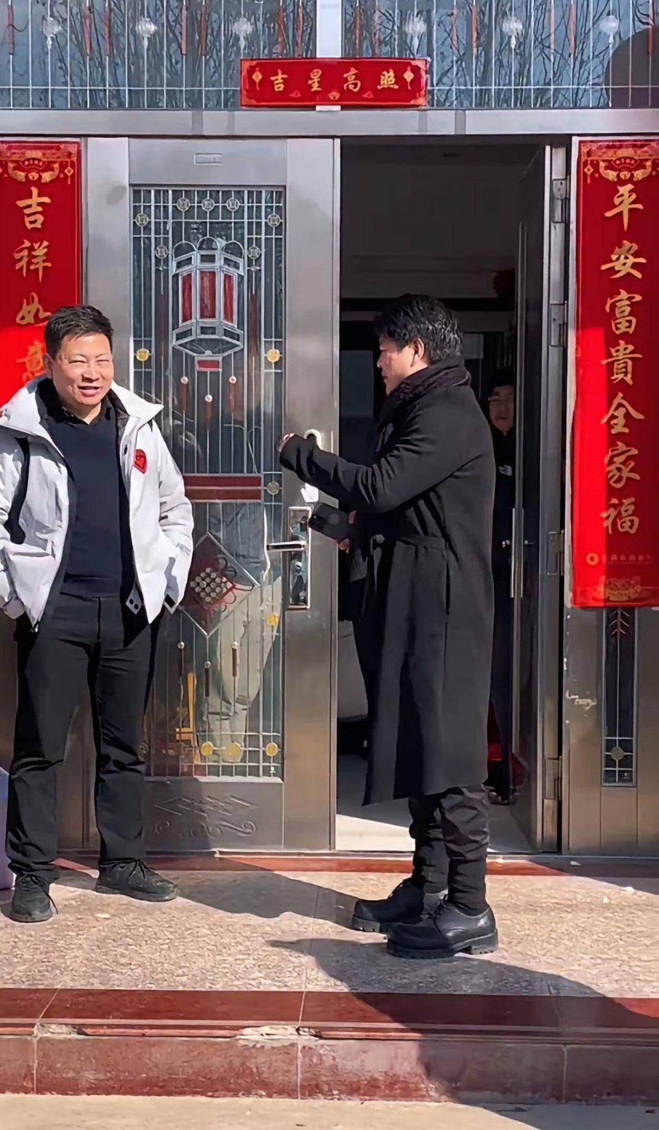 来看看余承东回霍邱过年,在自家门口招呼亲朋时的那份松弛。这一刻,没有鸿蒙生态的迭代复盘,没有汽车ADS技术的攻坚研讨,只有归乡游子与亲朋邻里的家长里短。他站在自家门檐下,听着熟悉的乡音,迎着往来的亲友,职场上的雷厉风行,悄悄化作了归乡的温和从容。老家的红春联、亮堂的大门,还有身边一张张熟面孔,把行业的喧嚣都隔在门外,只留下这份独属于春节的、最质朴的松弛与团圆。