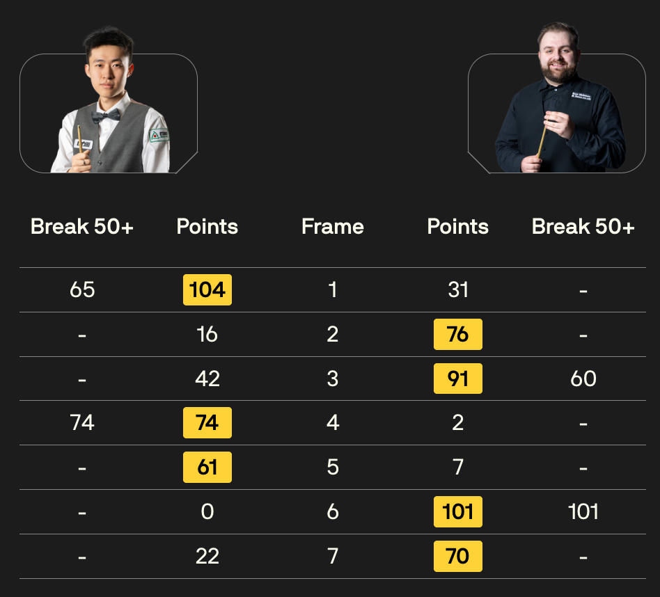 全场比赛,常冰玉共打出2杆50+(65、74),佩奇打出一杆破百(101)以及一杆50+(60)。