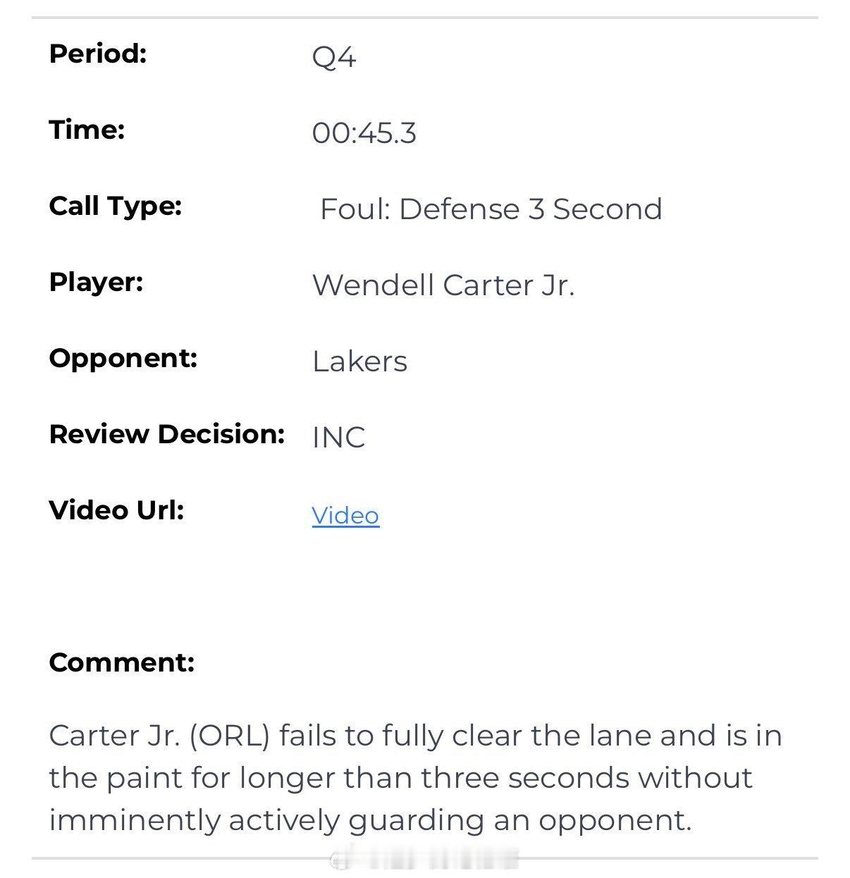 剩1:07 :东契奇合球后多走两步 → 漏吹走步(湖人获利)剩45.3s :小卡特禁区超3秒无积极防守 → 漏吹防守3秒(魔术获利)剩余7.6s :东契奇打手卡特准绝杀 → 漏吹防守犯规(卡特本应加罚1次,湖人获利)