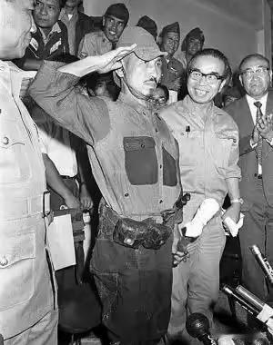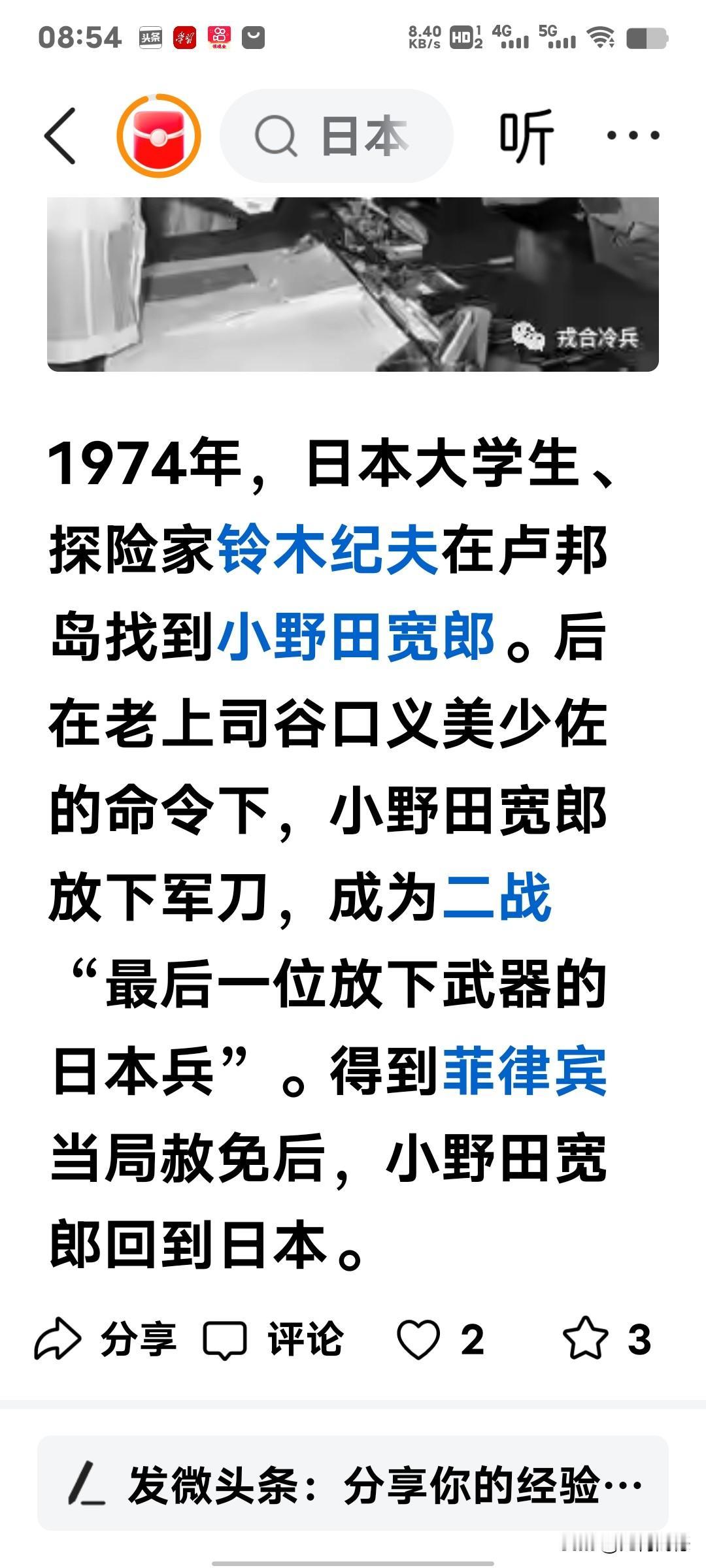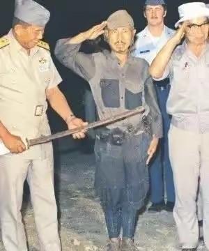 照片中这个敬着军礼的日本鬼子,名叫小野田宽郎,他被认为是二战最后一个放下武器的日本鬼子。1945年,日本战败投降后,这个名叫小野田宽郎的日本鬼子拒不投降,誓死效忠天皇,他在菲律宾的卢邦岛打游击29年,造成当地人伤亡130人,直到1974年,在他老上司的命令下,他才放下了武器。不得不承认,这家伙相当顽固,放下武器之后,他被菲律宾赦免,回到日本之后,不悔过,不反省,一生都在美化侵略战争!