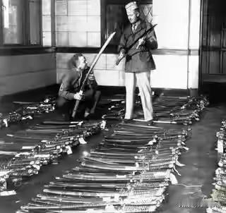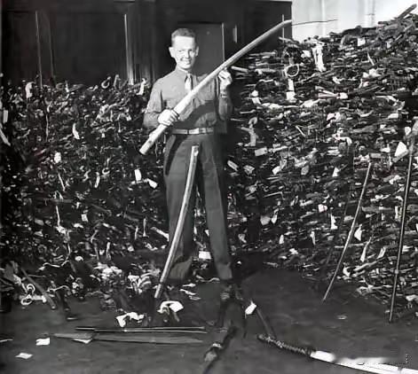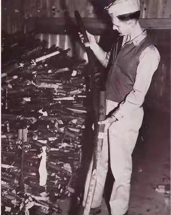 日本鬼子的军刀都到哪里去了?看看这些堆积如山的军刀老照片,已经告诉我们答案了,日