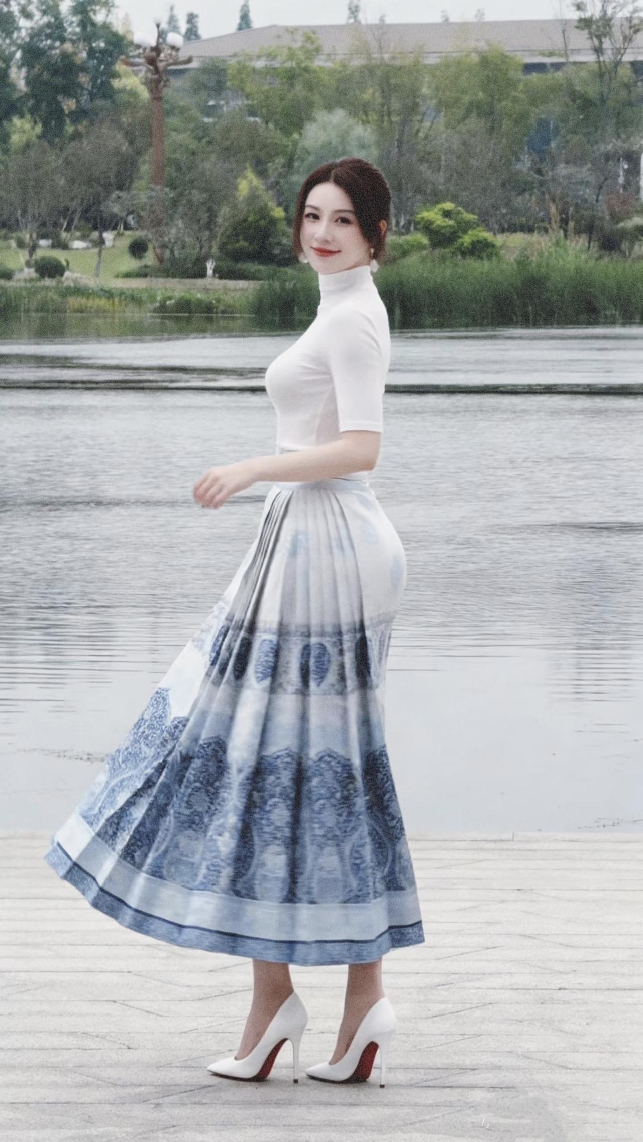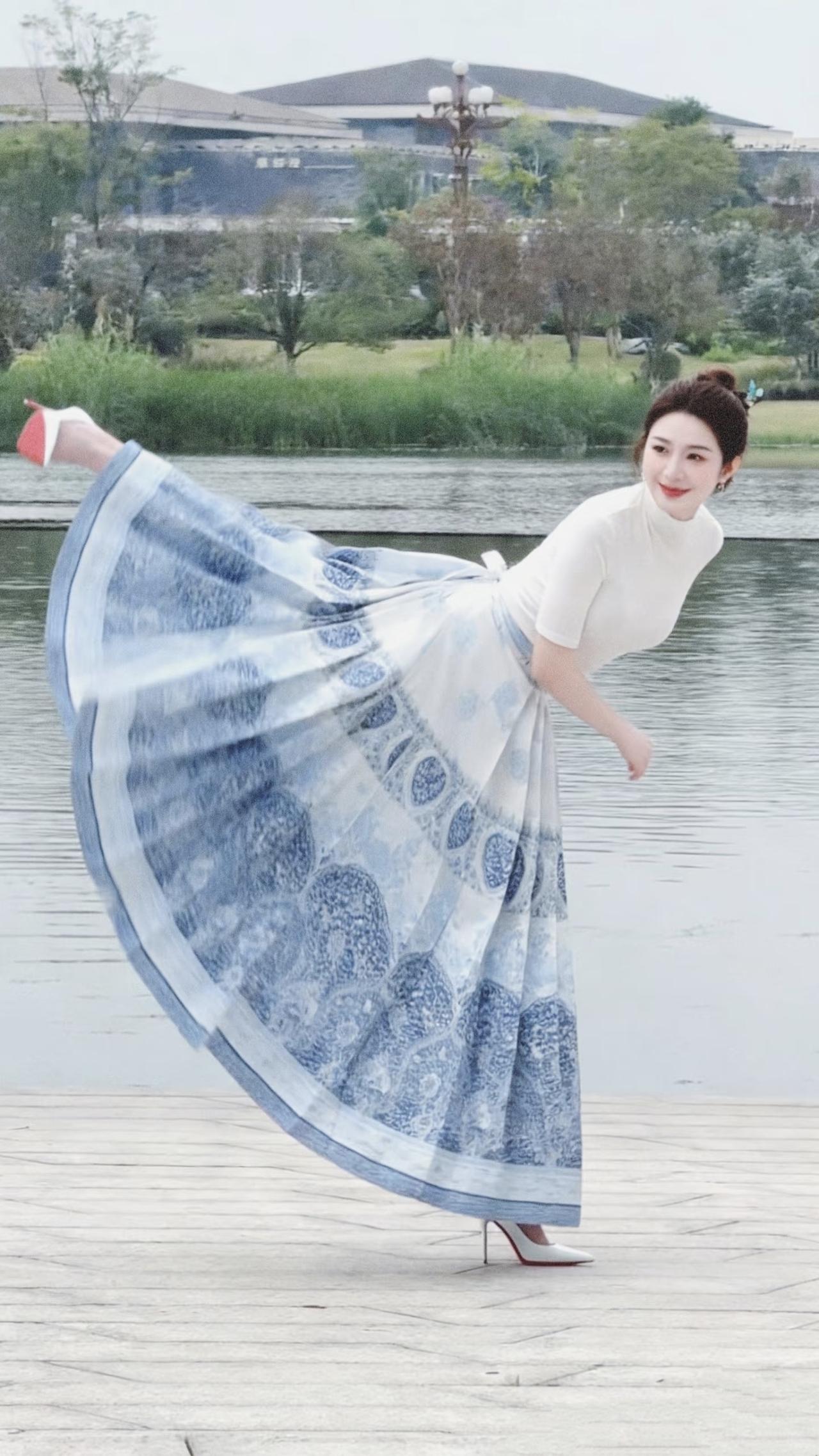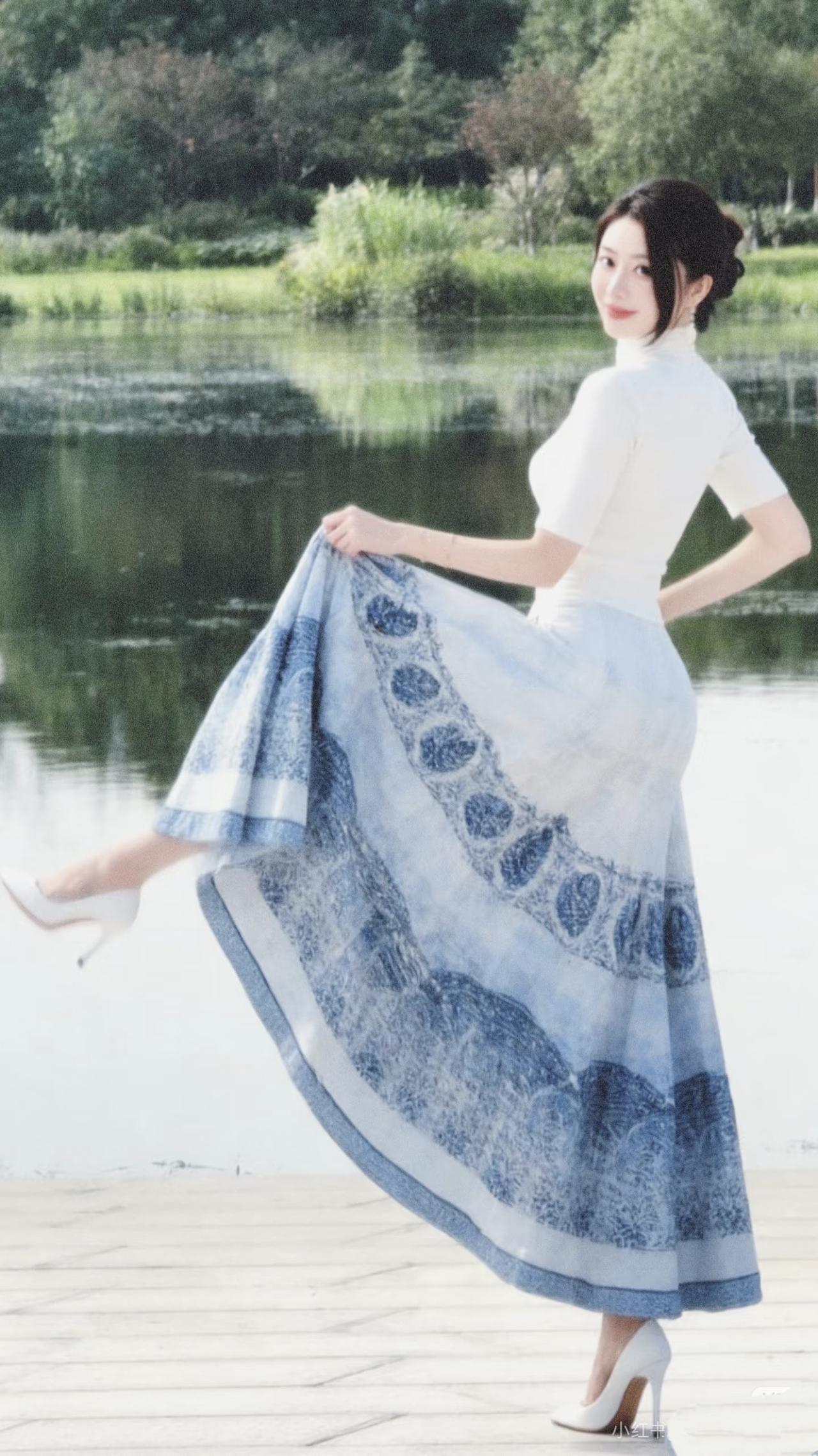 美图欣赏,看图写诗,情感解读 《湖畔青花》 七言绝句: 青裙漫卷水云间, 素袂轻扬映碧天。 笑靥嫣然风拂柳, 一湖清韵落尘烟。 现代诗意: 白衫衬着青花的裙, 在湖畔漫舞。 风掀起裙摆的涟漪, 像把江南的烟雨, 都揉进这一步一顾的温柔里。 水光映着笑靥, 时光也慢了下来。 清丽短句: 裙似青花,人如秋水。 风动裙裾,影落清波。 一颦一笑,皆是诗意。 情感解读: 青裙漫卷如青花晕染,素袂轻扬似清风拂柳,既藏着东方古典的雅致,又透着现代女性的灵动。一颦一笑间,把江南烟雨的温柔、时光慢下来的诗意,都凝在湖畔的光影里,让人在静美中读懂“诗意栖居”的浪漫。 治愈系风景美诗 湖畔紫裙照 图片来源于网络,侵删