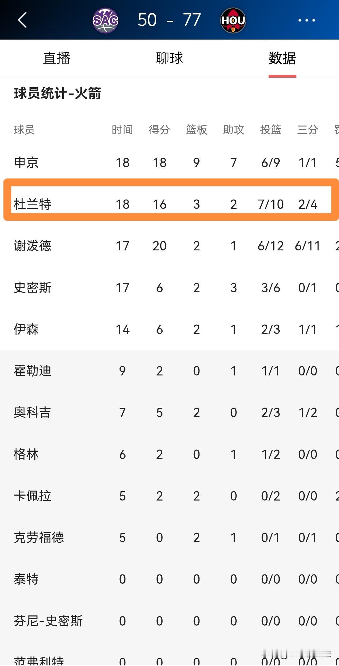 火箭超级巨星杜兰特竟然成为了陪衬!在今天进行的火箭和国王的比赛中,目前双方的上半