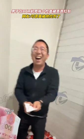 还真能捡到钱!浙江,男子和妻子一起到银行的ATM机取钱,准备离开时,男子突然对地上堆放的废弃红包起了兴趣,直接弯下腰一张张的查看,妻子在旁边看的不耐烦,结果男子还真从红包里翻到了钱。网友:可恶,真让他给捡到了 评论区一条高赞留言戳中无数人:"我每次路过银行 ATM 机都想翻,就是没那胆子跟脸皮,大哥这一百块,捡得我心服口服。" 2026 年 2 月 24 日下午,浙江一家银行自助机房里,一场看似荒诞的 "寻宝" 上演。 彼时正值年后现金流转旺季,人们匆匆进出办理压岁钱存取,无人留意过墙角那堆被弃置的红包壳。 这场反转大戏的主角,是姓张的四十岁男子与同行的妻子刘女士。 二人下班顺路前来,本只取些现金预备晚间家人聚餐与孩童采购,办完业务已行至机房门口,张先生却忽然驻足,目光死死钉在地上那堆杂乱的废弃红包上。 刘女士的第一反应是阻拦,拽着他的胳膊催促:"别磨蹭,那些都是垃圾,谁会把钱落红包里?被人看见还显得贪小便宜。" 但张先生充耳不闻,俯身蹲身,开启了一场持续数分钟的细致 "排查"。 他的动作不急不缓,逐拿起每一枚红包,仔细展平查看,确认空无一物后才弃入桶中,继而转向下一枚。 周遭路人纷纷侧目,有人窃笑,有人投来异样目光,刘女士更是面色沉郁,双手抱胸满脸不耐,周围的喧嚣与目光仿佛被他隔绝在外,眼里只有手中的红包。 时间一分一秒流逝,刘女士的忍耐已到临界点,正欲强行拉起丈夫,张先生的动作骤然停住。 他指尖捏起一枚封口仅撕出小口的红包,轻捏之下,指尖传来清晰的硬物触感。 那双专注的眼睛瞬间亮了,动作也变得愈发轻柔。 完全拆开红包的刹那,一张崭新挺括的百元大钞显露而出。 这明显是前一位储户拆红包存钱时,一时疏忽将钞票遗落在壳内,随手丢弃后竟成了这场 "惊喜" 的主角。 张先生攥着钞票,先是一愣,随即喜形于色,转头看向仍在气闷的妻子,扬了扬手中的 "战利品",难掩得意:"你看,我说过能有收获吧。" 刘女士凑近看清真容,脸上的嫌恶与急躁瞬间僵住,转而化作满眼惊愕,张了张嘴竟一时语塞 —— 这场她眼中的 "无用之举",竟真的换来了实打实的惊喜。 这段充满反转的全过程,被机房内一位路人全程拍录。 短视频被随手发布后,竟迅速引爆网络,数小时内点赞量突破百万,评论区被网友的感慨与懊悔刷屏。 网友们的心声高度一致:"气人,凭啥是他捡到!"" 我也有这毛病,走到哪都想翻翻,就是拉不下脸 ",还有人晒出相似经历:" 拆完红包总再检查一遍,就怕漏了,现在看来这习惯真好。 "吐槽粗心失主的声音也不在少数,直言" 一百块就这么丢了,太不仔细了 "。 这场意外 "捡漏",并非孤例。 不少网友留言分享类似见闻:超市收银台旁,保洁阿姨清理礼品红包时,屡次在夹层中发现顾客遗落的零钱与整钞;酒店客房里,服务员整理新人婚宴后的红包,也曾翻出遗漏的现金。 这些保洁与服务人员,无一例外都选择等候失主或上交管理,从不私留,一句 "别人粗心,我们多细心点,能少让人吃亏",道尽了这份职业习惯里的温暖。 随着讨论热度攀升,网友也给出了实用建议:银行可在 ATM 机旁增设专用回收桶,专门收纳废弃红包,既保持环境整洁,也能提醒人们拆封后多做核对,减少遗失情况。 而张先生手中的这一百元,想来也成了晚间餐桌上的一道美味,为这场家庭小聚添了一份 "天降好运" 的欢喜。 回看这件事,运气从来不是偶然的推手。 多数人路过时只会匆匆一瞥,觉得 "那是垃圾",唯有张先生愿意蹲下身,耐着性子翻查每一处可能。 生活中的小惊喜,往往就藏在这份不轻易放弃的细心与坚持里。 我们总期待着突如其来的好运,却常常忽略了,那些看似不起眼的瞬间,正是拉开幸运序幕的时刻。 多一份留意,多一点耐心,或许平凡日子里的一次俯身,就能换来属于你的 "小确幸"。 这不仅是一次偶然的捡漏,更是给所有人的提醒:认真对待每一个细节,好运自会在不经意间与你相逢。 如果各位看官老爷们已经选择阅读了此文,麻烦您点一下关注,既方便您进行讨论和分享,又能带来不一样的参与感,感谢各位看官老爷们的支持!