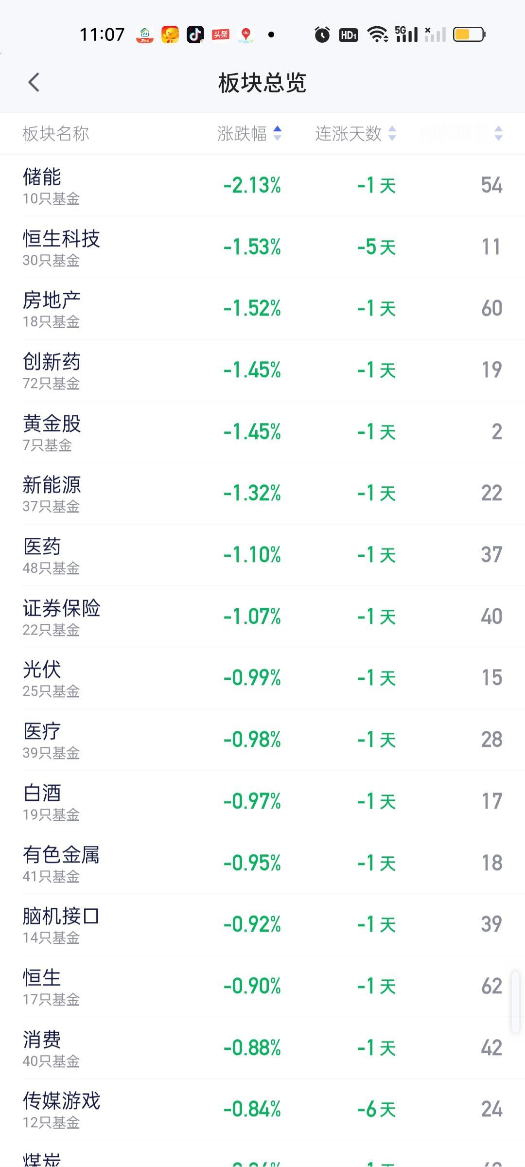 从目前的板块榜来看,截止此刻,涨得最好的是电网设备,CPO,通信,商业航天,人工智能,云计算,海外基金,军工,大科技,消费电子,绿色电力。跌幅居前的是储能,恒科,房地产,创新药,黄金,新能源,医药,证券保险,光伏,医疗,白酒。有色金属等。