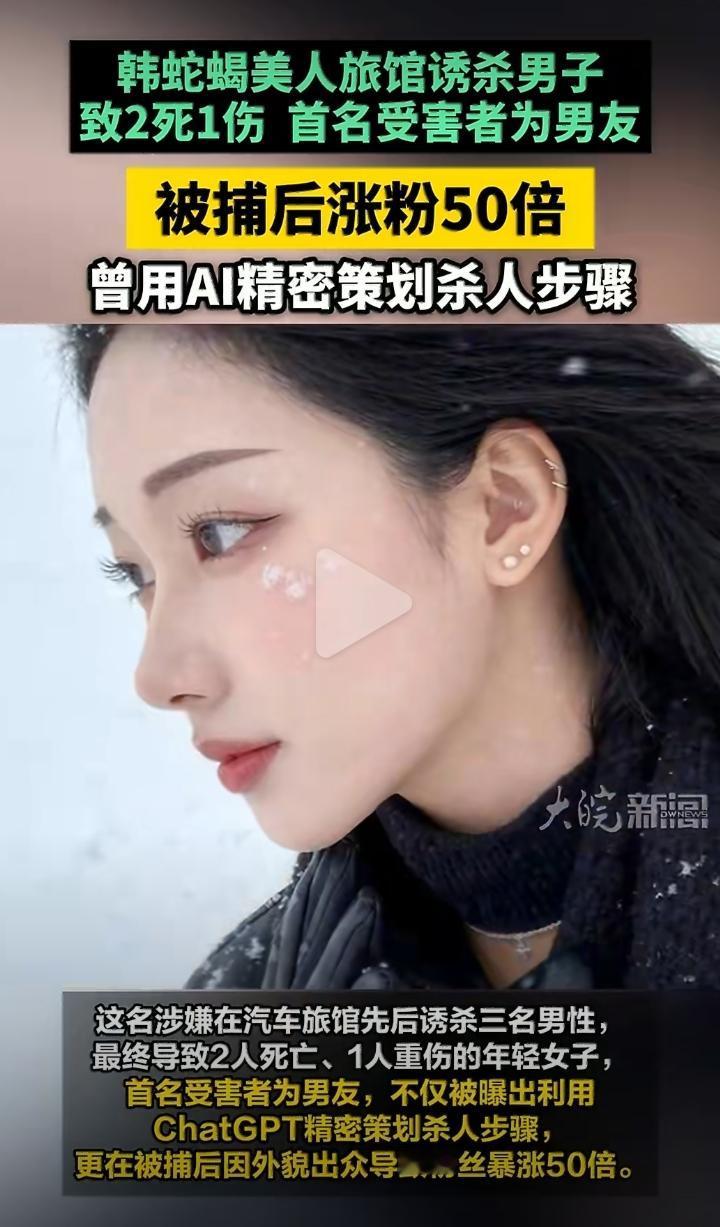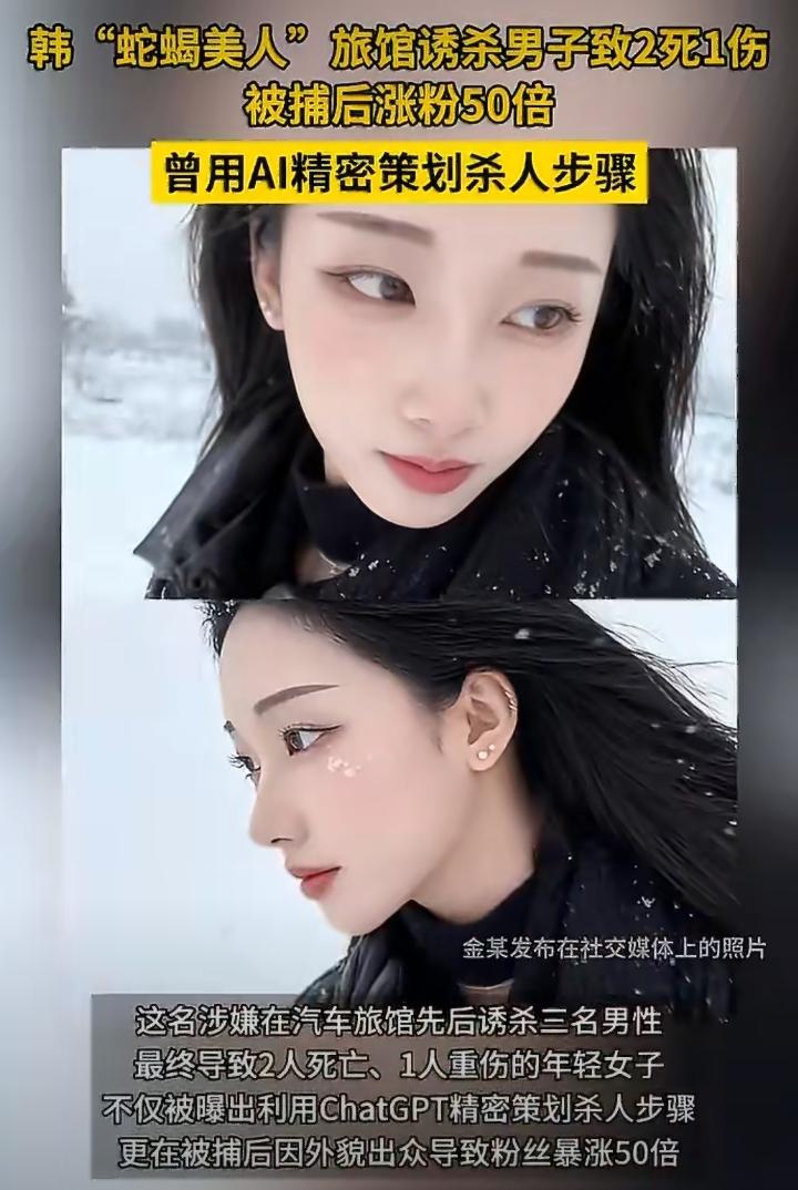 跟大家聊两件最近在网上传得很凶的韩国极端事件,一件靠AI策划杀人,一件课堂抡锤伤人,别看表面看着离奇,实际上反映了我们这个时代最该警惕的问题。 先说说最新这起:一名22岁韩国女性,利用社交平台引诱男性见面,在旅馆内使用安眠药实施侵害,最终造成2死1重伤。更让人不寒而栗的是,她全程使用ChatGPT查询致死剂量、作案后果,进行精密策划,属于典型的预谋杀人。 可更魔幻的是,就因为外表清秀,她被捕后社交账号粉丝暴涨50倍,评论区甚至出现“漂亮即正义”的荒唐言论。 另一件是早年留日韩国学生柳珠贤,因长期遭受同学霸凌与轻视,在课堂上持铁锤伤人,致8人受伤,被抓时态度冷漠、毫无悔意,被网友戏称“韩服钟无艳”。 两件事放在一起看,逻辑其实非常清晰。 第一,工具永远无罪,人心才是关键。 ChatGPT不会主动教人犯罪,它只是一个被使用的工具。就像历史上的刀枪、火药,本身没有善恶,决定它用途的,永远是使用它的人。把罪恶归咎于技术,本质上是在回避人性的幽暗。 第二,霸凌值得同情,但暴力绝不是答案。 被欺负、被轻视的经历值得正视,社会也理应反对校园霸凌。但以暴制暴、伤及无辜,从来都不是正义,只会制造新的悲剧。从古至今,极端情绪的失控,最终毁掉的都是自己。 第三,比案件更可怕的,是社会价值观的扭曲。 杀人者因为一张脸就被追捧、被洗白,甚至有人为其开脱,这是最危险的信号。当颜值凌驾于法律之上,当暴力被娱乐化、猎奇化,当是非黑白可以被外貌随意颠倒,整个社会的底线都会一步步失守。 我们看遍中外历史就会明白: 一个社会真正的安稳,从来不是靠技术进步,也不是靠外表包装,而是靠清晰的法治、稳定的人心、不颠倒的是非观。 AI再先进,也治不了扭曲的人心; 长相再好看,也洗不掉犯下的罪恶。 守住底线,敬畏法律,才是长久之道。