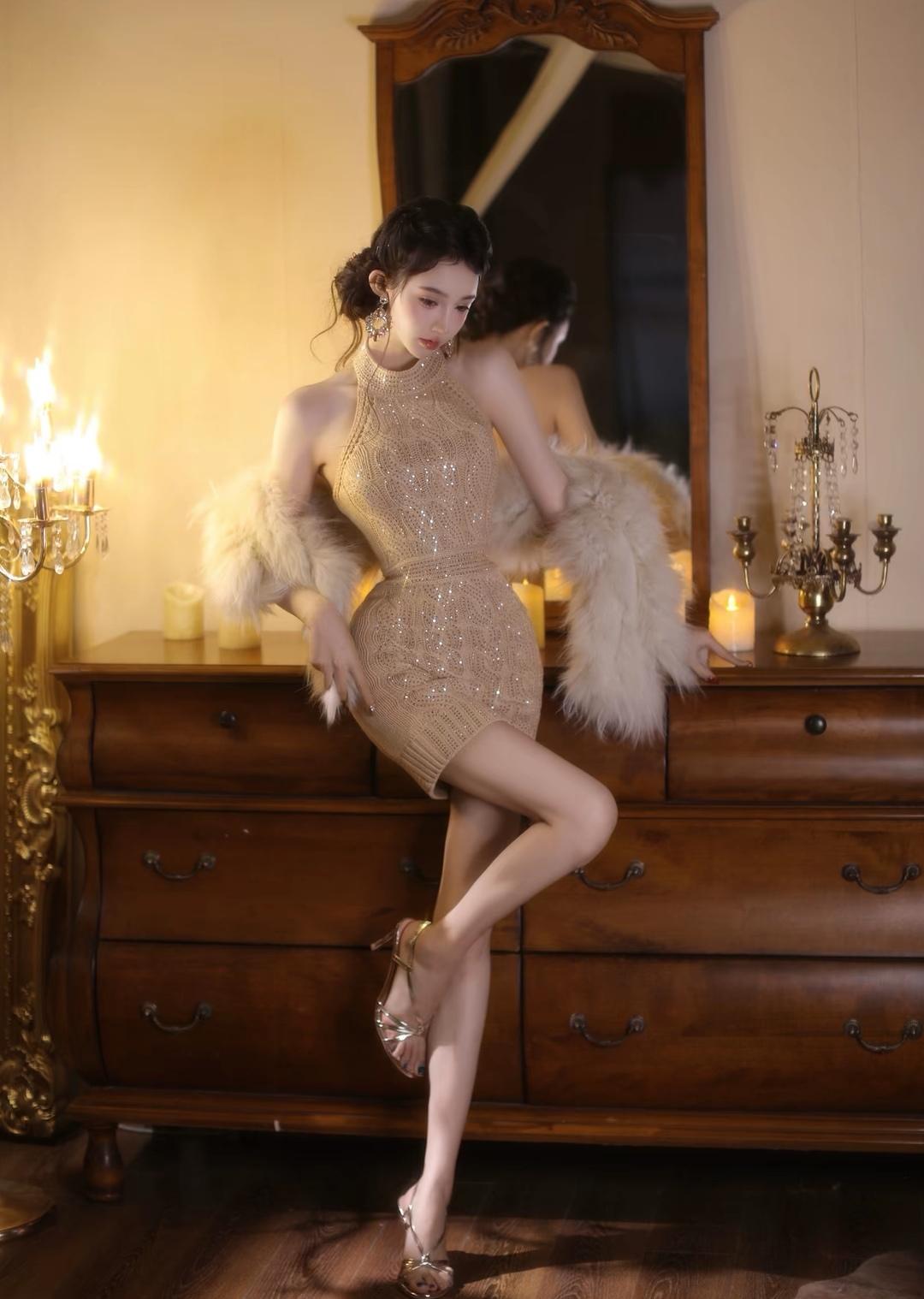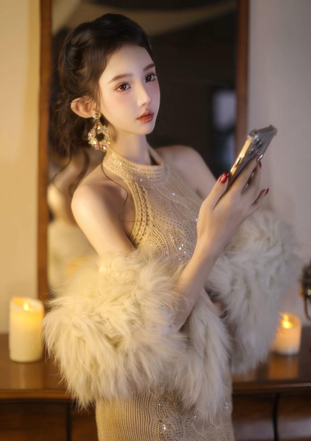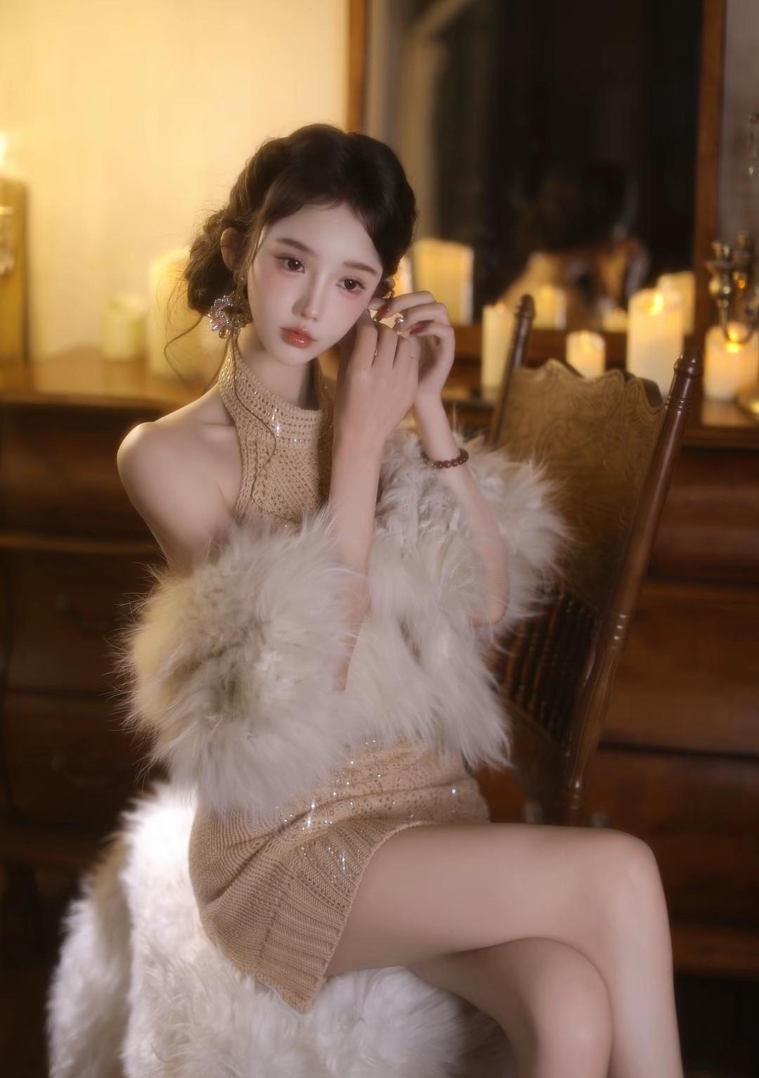 暖光漫过复古烛台,毛绒披肩裹着晚礼服的微光,新年第一组复古大片,把优雅揉进每一寸光影里。