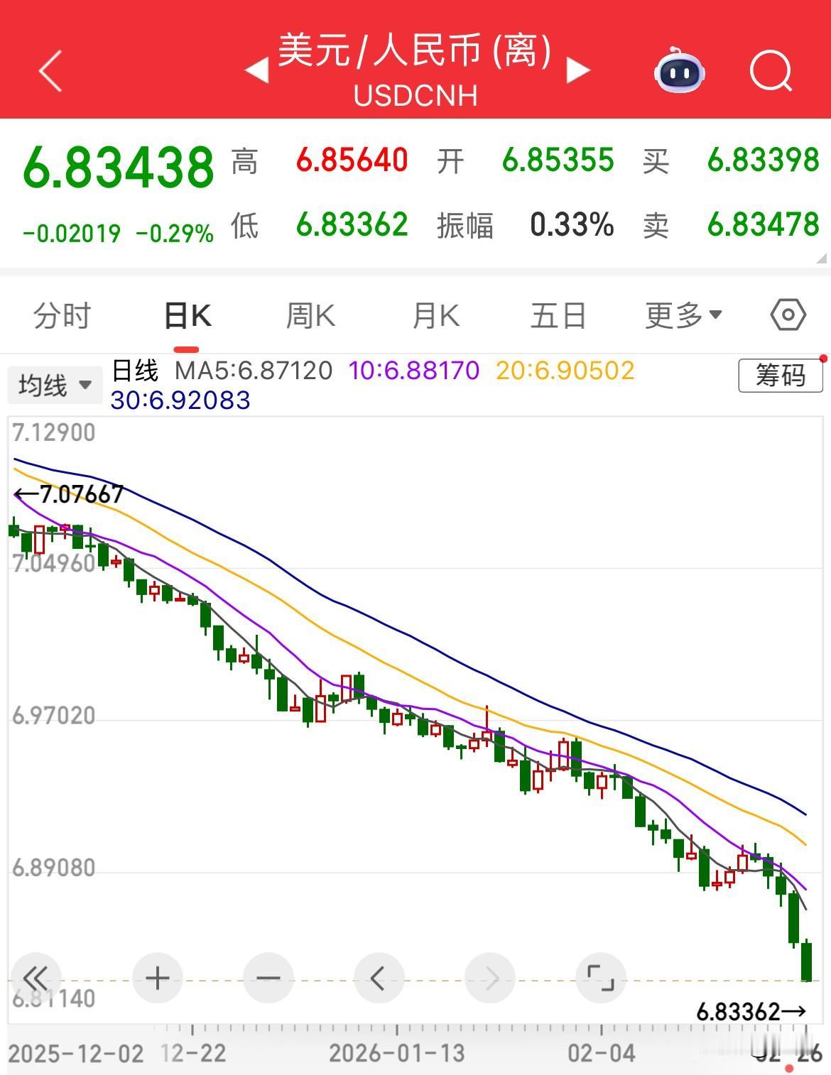 离岸人民币快速升值至1美元兑换6.83元人民币,单日升值200个基点,而人民币目前这一水平是2023年4月以来的新高。同样,离岸、在岸人民币兑美元均升破6.85,创2023年4月14日以来新高。 外贸承压,看来刺激国内消费需求迫在眉睫呀!
