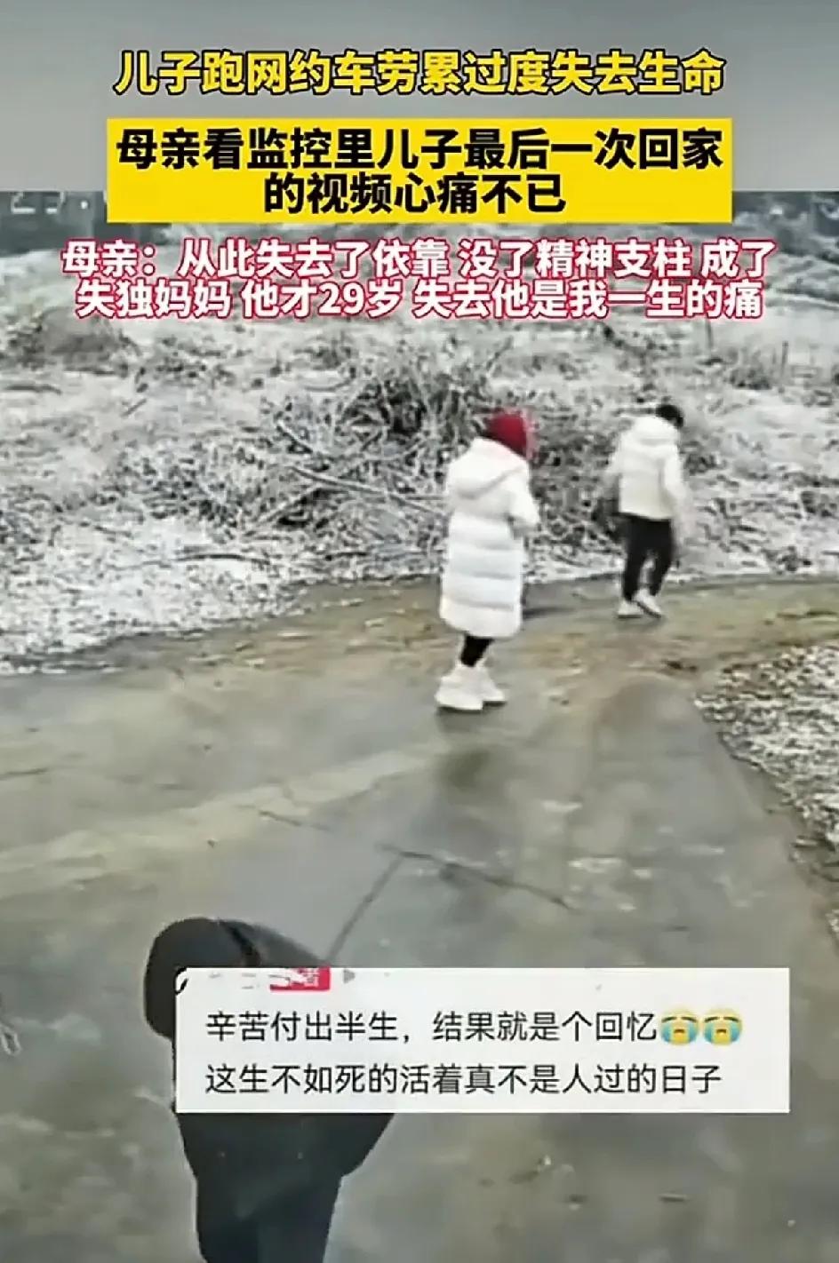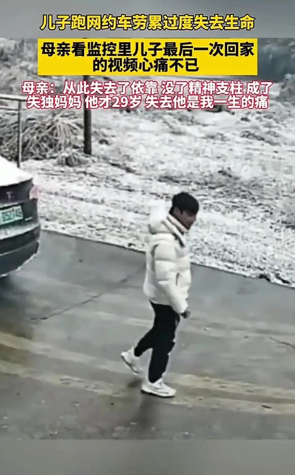 29岁男子跑网约车,劳累过度离世,失独的母亲,看家里的监控,看到儿子最后生前最后的身影,心痛不已。真是可怜人啊!一个失独的母亲在网上发文说:我一生的痛,我唯一的儿子才29岁,他在上海跑网约车。白天晚上有客就跑,把自己累到一睡,永不醒啊。 她打开家里的监控,看到儿子生前留下的最后一个视频,默默的流着眼泪。 她苦苦的追问老天:为什么会这样对我呀?苦苦的付出了半生,结果只剩下回忆里的一场空。